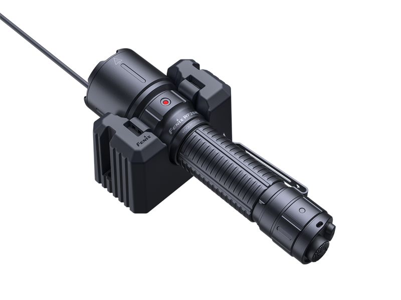 Основная особенность фонаря Fenix WF26R - это наличие специальной магнитной подставки, благодаря которой он хранится и подзаряжается. Съемный кабель, который идет в комплекте, гарантирует пользователю, что его фонарь будет готов к применению в любой момент. Крепить подставку можно на стене, столе или в автомобиле.