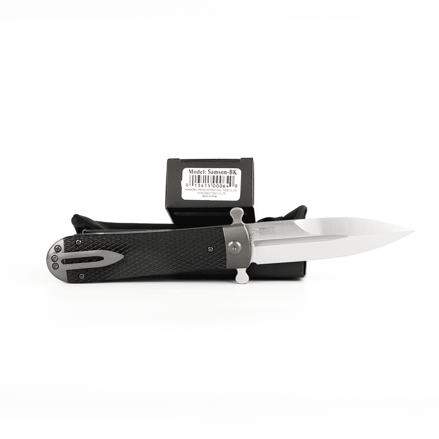Нож Adimanti Samson имеет визуальное сходство с копьем благодаря симметричному клинку. Изделие рассчитано на использование как в городских, так и полевых условиях, поскольку оно имеет компактные габариты для комфортного ношения в кармане и обладает высокой стойкостью к воздействию агрессивных сред, в особенности ряда кислот и обычной влаги.