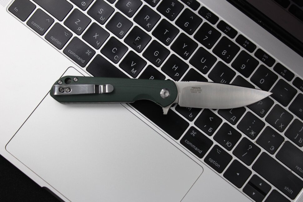 Нож FH41S-GB — отличный вариант EDC-клинка, который занимает минимум места в кармане и выделяется высоким качеством. Лезвие инструмента изготовлено из нержавеющей стали D2 с высоким содержанием хрома. Благодаря оптимальной твердости, которая составляет 60 HRC, сталь демонстрирует качественный рез вне зависимости от сложности работы и не требует частой заточки.