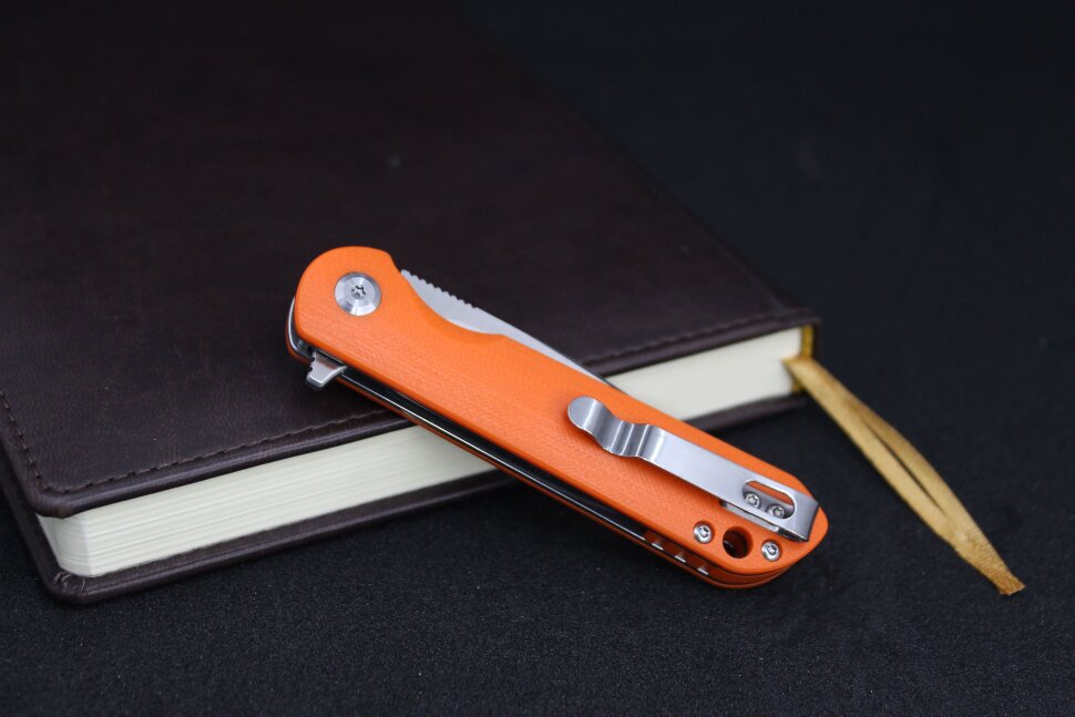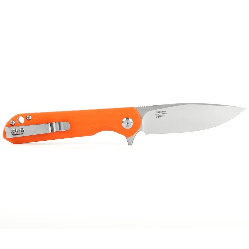 Нож FH41S-OR — отличный вариант EDC-клинка, который занимает минимум места в кармане и выделяется высоким качеством. Лезвие инструмента изготовлено из нержавеющей стали D2 с высоким содержанием хрома. Благодаря оптимальной твердости, которая составляет 60 HRC, сталь демонстрирует качественный рез вне зависимости от сложности работы и не требует частой заточки.