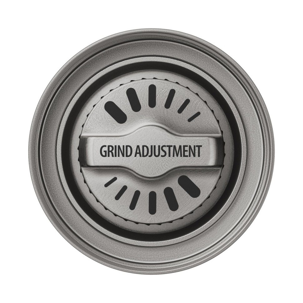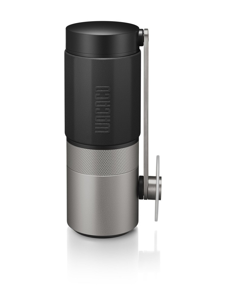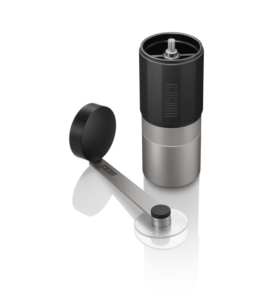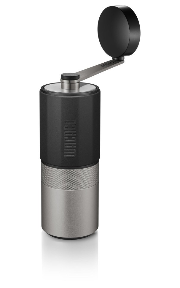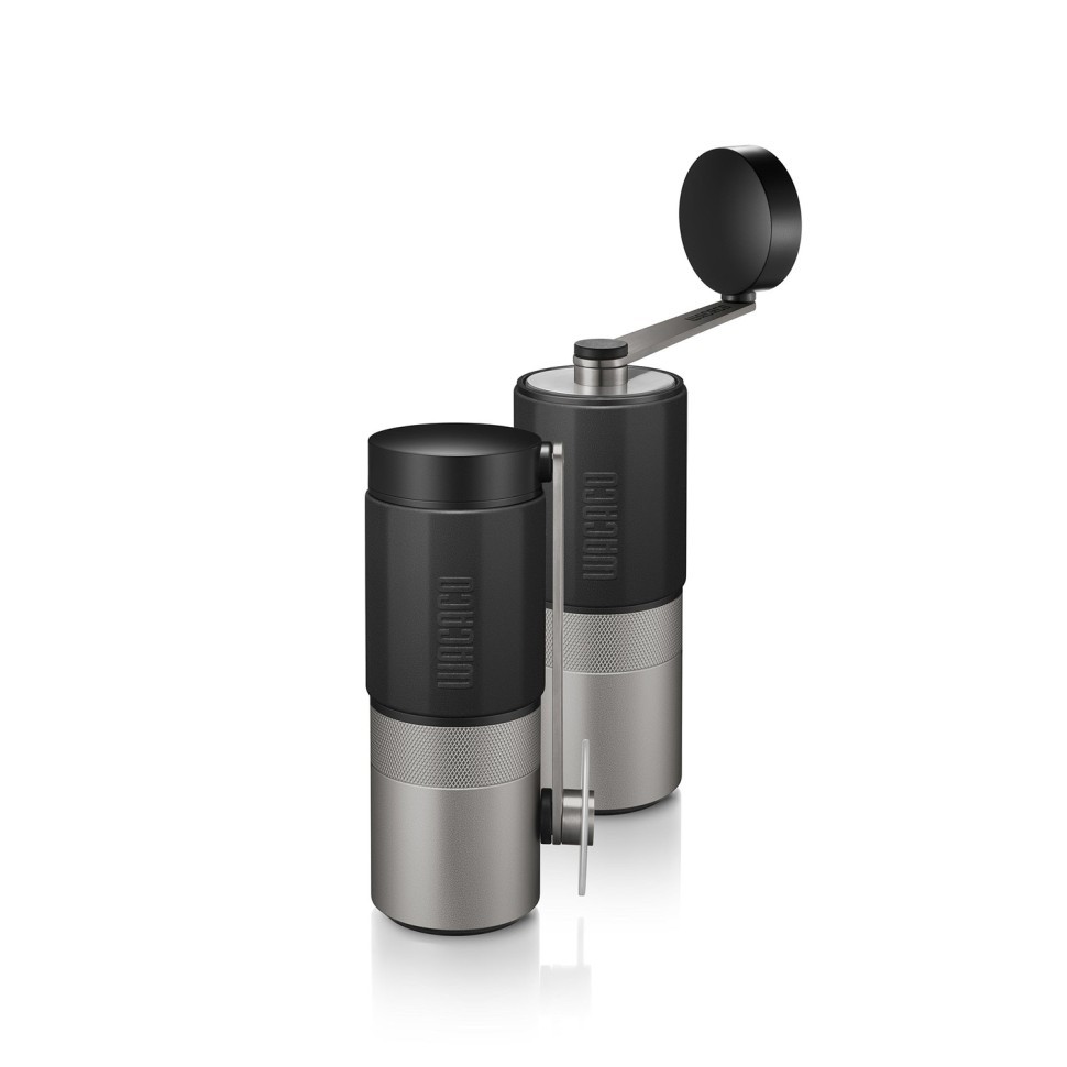 Компактная ручная кофемолка Wacaco Exagrind с жерновами из нержавеющей стали. Ручная кофемолка позволяет смолоть до 20 граммов кофе. Внутри шестиконечные стальные жернова диаметром 38 мм. Кофемолка имеет прорезиненную поверхность в верхней части и алюминиевый стакан для смолотого кофе.