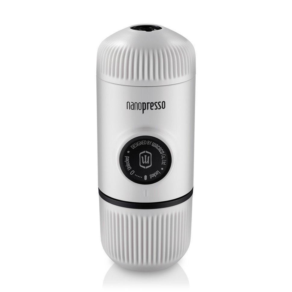 Ручная портативная кофемашина WACACO Nanopresso Elements, цвет холодно-белый. Встроенный ручной насос создает давление 18 бар.