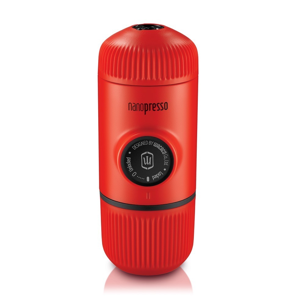 Ручная портативная кофемашина WACACO Nanopresso Elements, цвет лавово-красный. Встроенный ручной насос создает давление 18 бар.