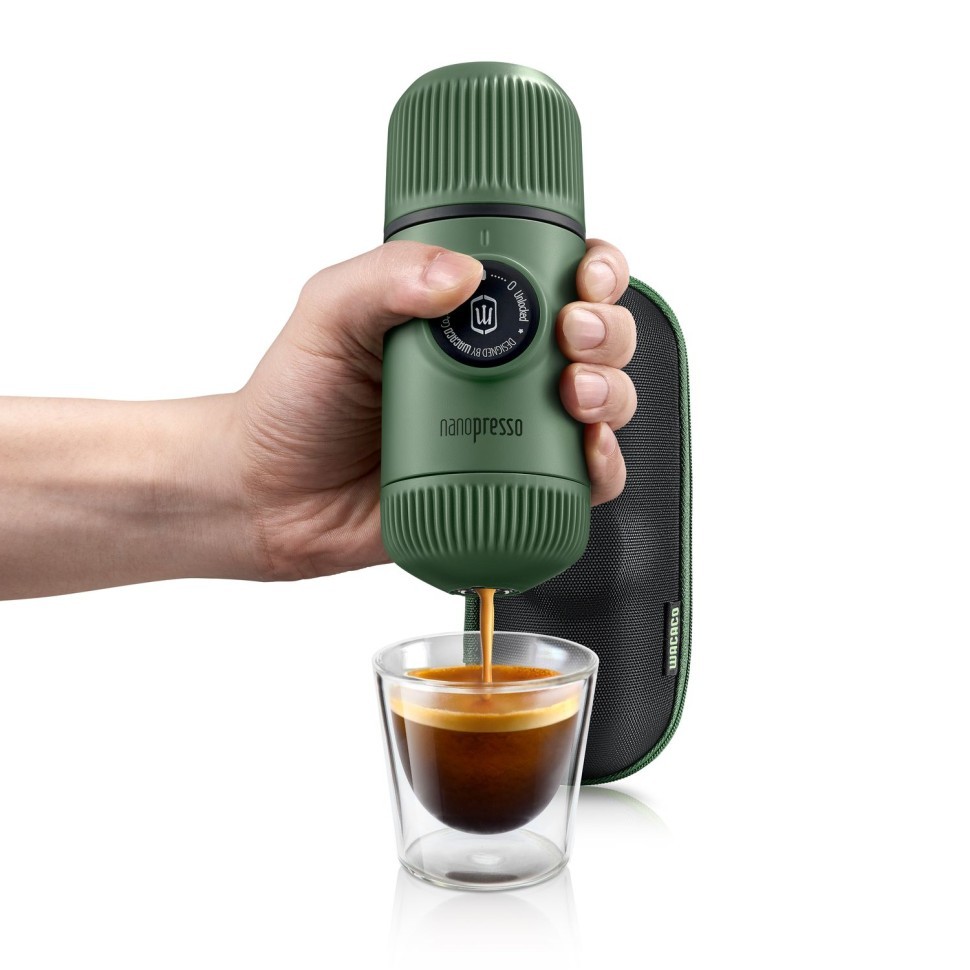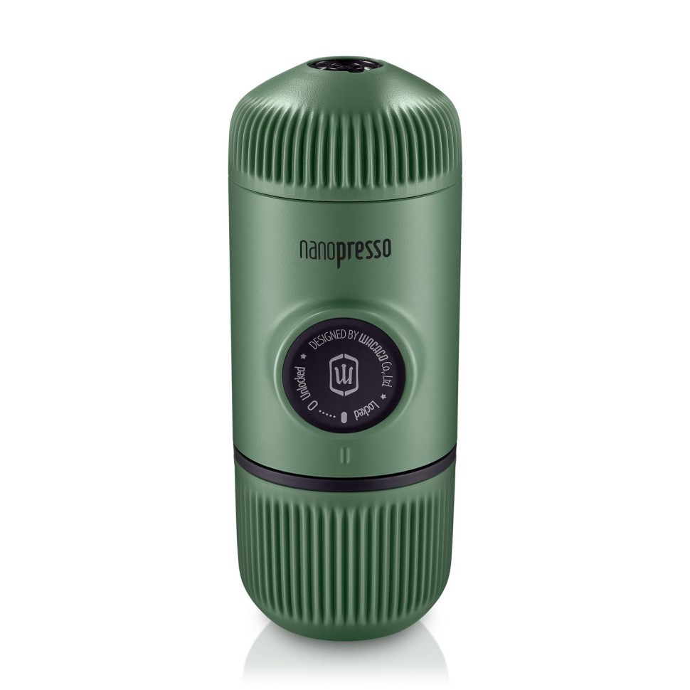 Ручная портативная кофемашина WACACO Nanopresso Elements, цвет зеленый мох. Встроенный ручной насос создает давление 18 бар.