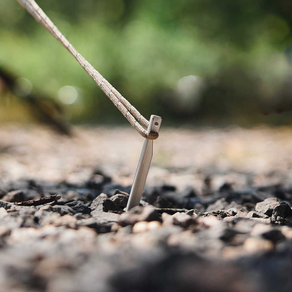 Детали изготовлены из высококлассного алюминия 7071, который не гнется под тяжестью тента. Анодирование поверхности добавляет колышкам приятное свечение и дополнительную защиту от ржавчины. С деталями ничего не случится, даже если они всю ночь будут установлены во влажную землю. V-образная форма добавляет устойчивость колышка, что гарантирует надежную фиксацию конструкции.