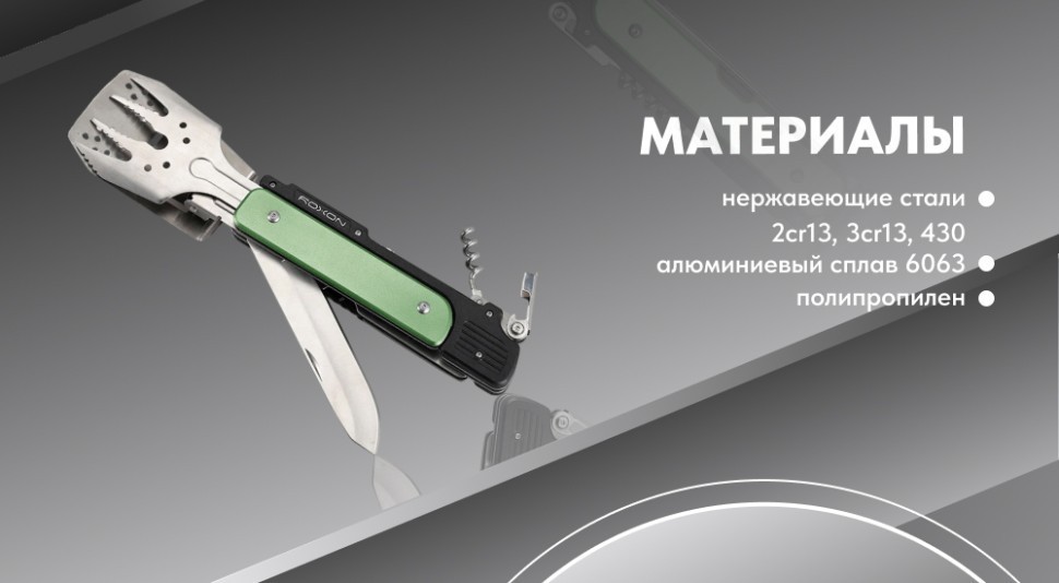- мультиинструмент сделан из сталей 430,3Cr13, 2Cr13, алюминия 6063