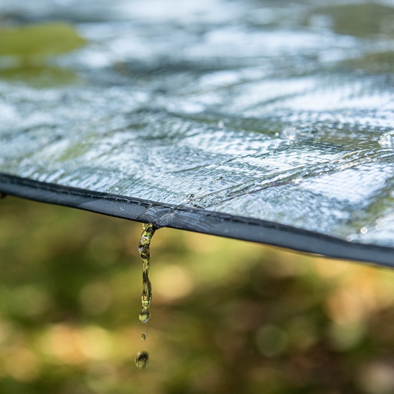 - Влагозащитный и водостойкий — слой алюминиевой фольги и PE полиэтилен защищает от сырости и холода, создавая комфортное место для отдыха.