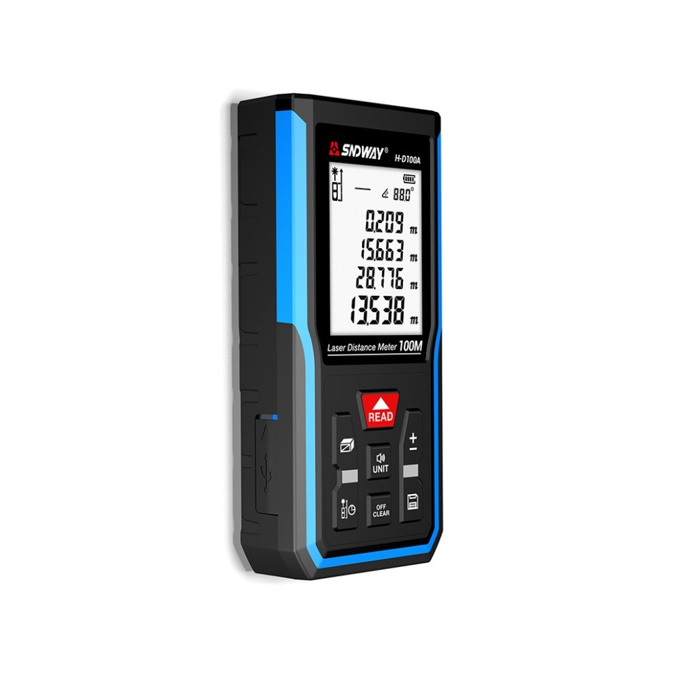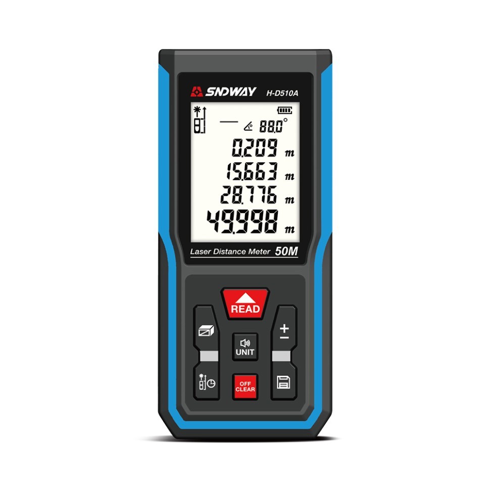 Лазерный дальномер SNDWAY H-D510A – это многофункциональный измерительный прибор с дальностью измерения до от 0,05 до 50 метров и точностью ±2 мм. С помощью этого компактного дальномера вы сможете в одно мгновение измерить расстояние, вычислить угол или рассчитать площадь поверхности и объем помещения. Устройство пригодится в ремонте и строительстве, при планировке и оформлении интерьера. Прибор также помогает в повседневных бытовых задачах, начиная от проверки уровня при монтаже полок до определения размеров окон при выборе штор.