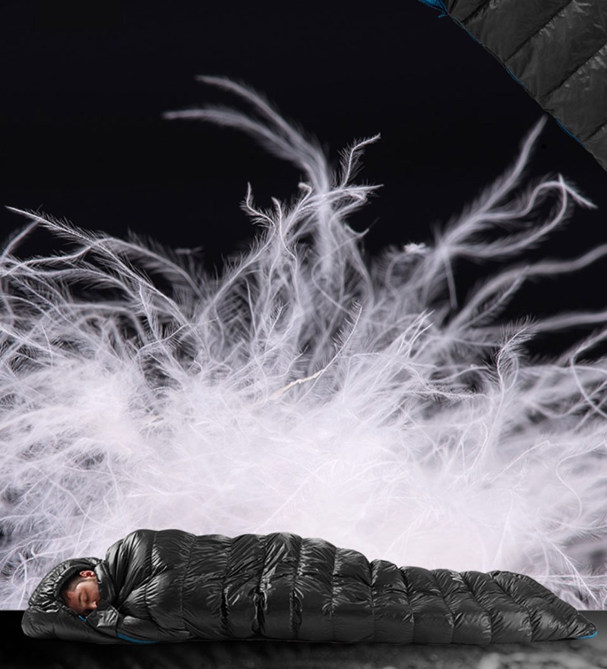 Он очень теплый и мягкий, но при этом имеет небольшой вес - до 1 кг, а также компактно упаковывается в чехол размером 18х35 см. Именно поэтому этот спальник пользуется большой популярностью у велосипедистов. Прекрасно подойдет для путешествий в весенне-летне-осенний период, потому что его температура комфорта составляет от 0 до 15 градусов по Цельсию, но при наличии теплой одежды или качественного термобелья в нем можно отдыхать вплоть до -5 градусов. Внутри спальник наполнен отборным белым гусиным пухом - легким и согревающим материалом.