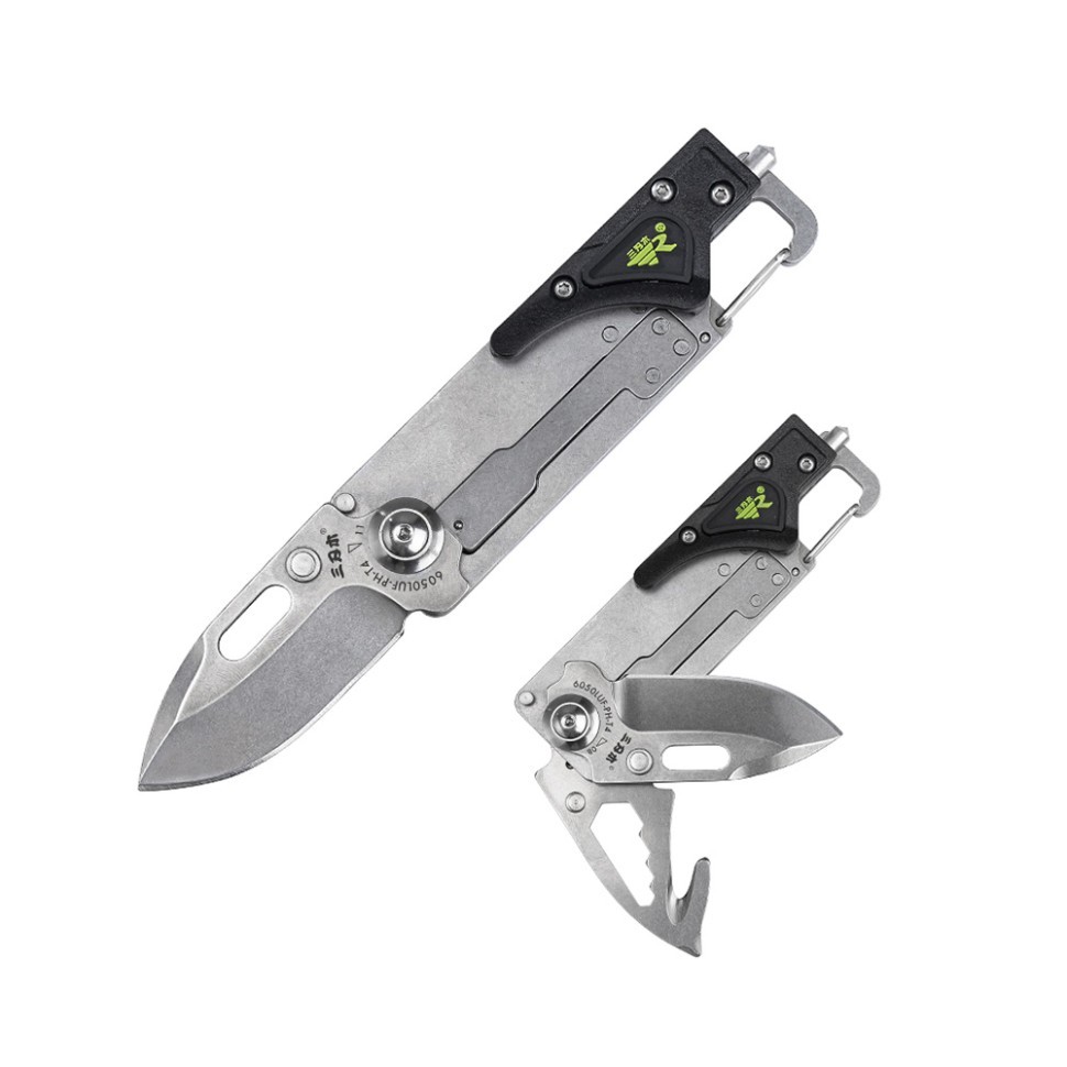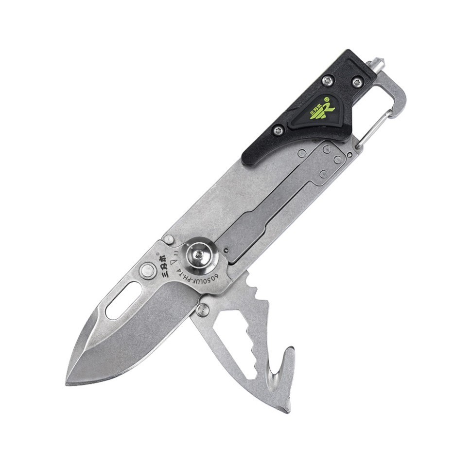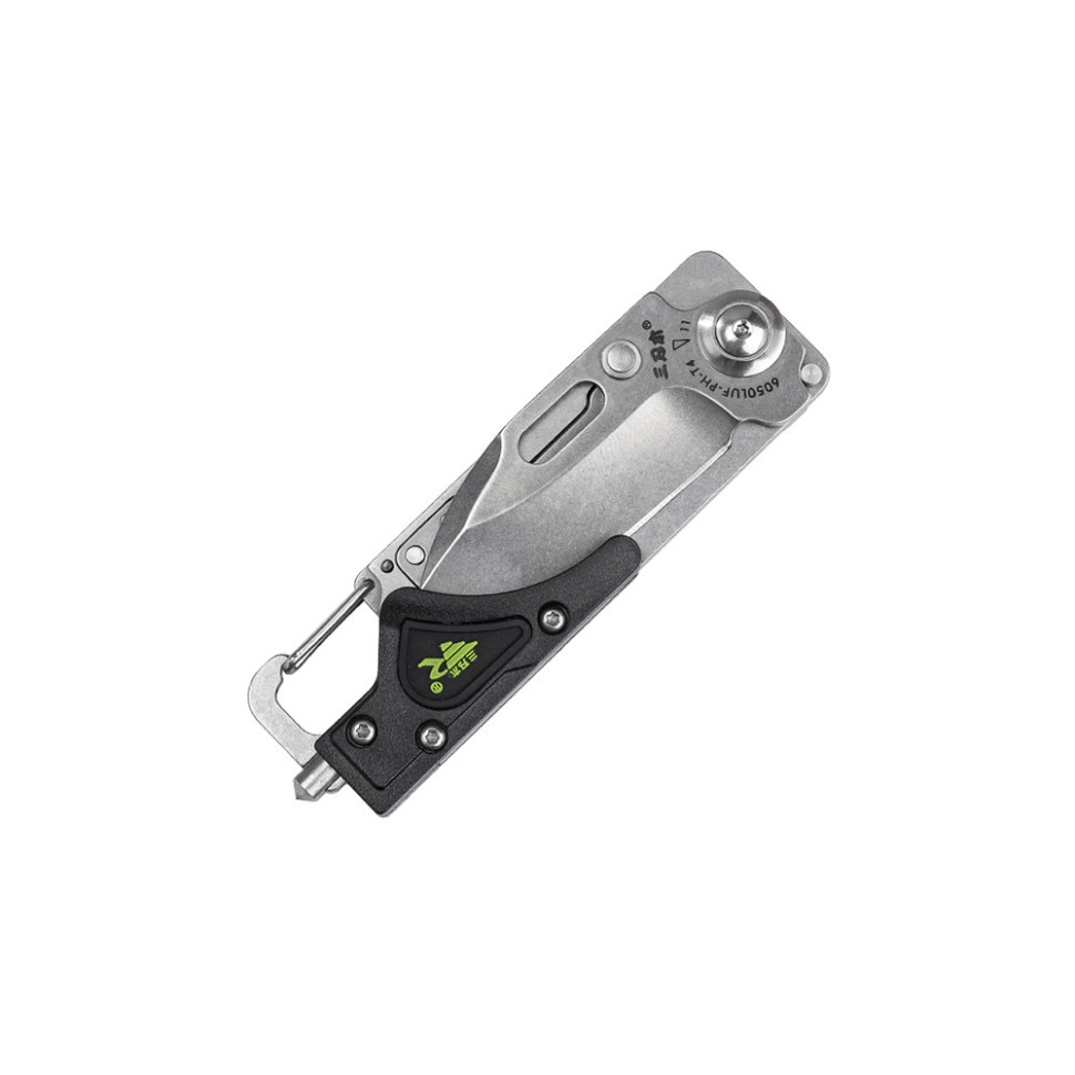 Sanrenmu 6050LUF‑PH‑T4 — это компактный и практичный многофункциональный EDC- нож, идеально подходящий для повседневного использования, для EDC, активного отдыха, путешествий, рыбалки и бытовых задач. Благодаря встроенному карабину его удобно носить на рюкзаке, поясе или снаряжении. Главная особенность модели — широкий набор встроенных инструментов, делающих 6050LUF‑PH‑T4 полноценным мультитулом. В конструкции предусмотрены: фонарик, крестовая отвертка, 4 гаечных ключа, стропорез, открывалка, стеклобой, инструмент для зачистки проводов и карабин.