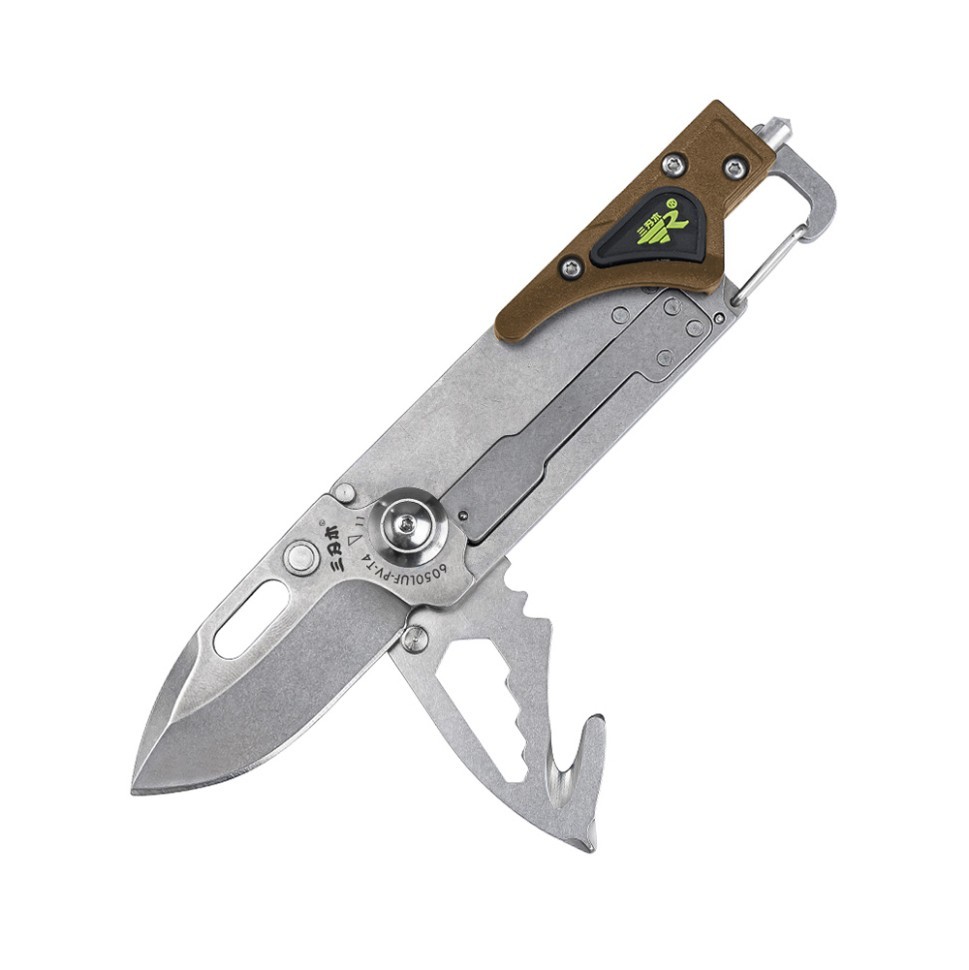 Sanrenmu 6050LUF-PV-T4 — это компактный и практичный многофункциональный EDC- нож, идеально подходящий для повседневного использования, для EDC, активного отдыха, путешествий, рыбалки и бытовых задач. Благодаря встроенному карабину его удобно носить на рюкзаке, поясе или снаряжении. Главная особенность модели — широкий набор встроенных инструментов, делающих 6050LUF‑PH‑T4 полноценным мультитулом. В конструкции предусмотрены: фонарик, крестовая отвертка, 4 гаечных ключа, стропорез, открывалка, стеклобой, инструмент для зачистки проводов и карабин.