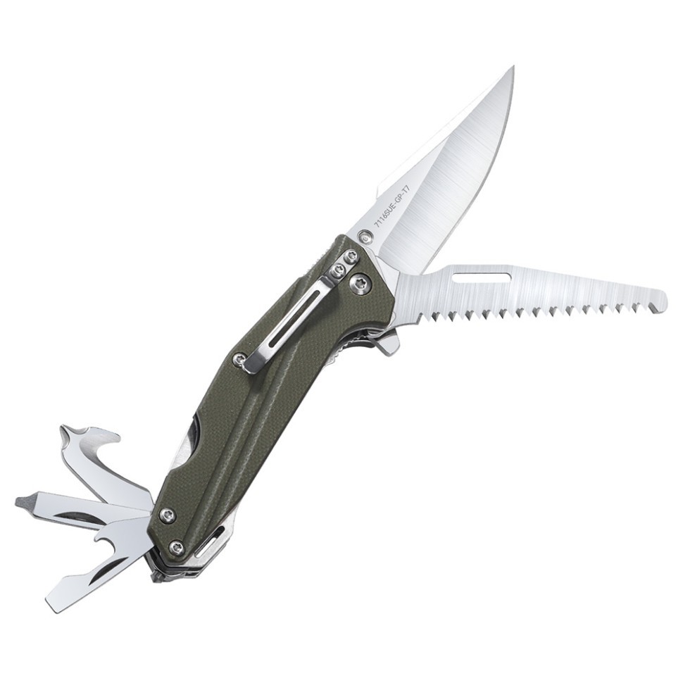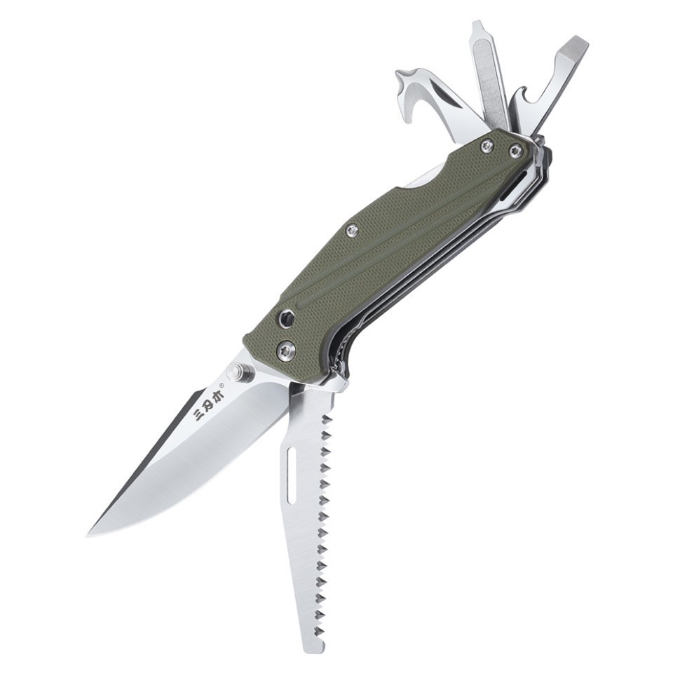 Многофункциональный нож Sanrenmu 7106SUE-GP-T7 — это компактный и надежный инструмент для повседневного использования, сочетающий в себе эргономичный дизайн, качественные материалы и расширенный функционал. Он предназначен для широкого круга задач — от повседневного применения до мелкого ремонта, туристических и тактических нужд. Нож оснащен девятью полезными инструментами, включая основной клинок, крестовую и две плоские отвертки, пилу, напильник, стропорез, стеклобой и открывалку. Такое многообразие делает его универсальным помощником в самых разных ситуациях.