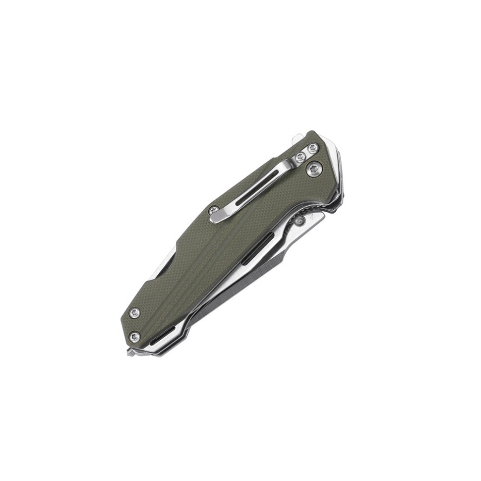 Рукоять 7106SUE-GP-T7 выполнена из надежного и долговечного материала G10 — это стеклотекстолит, устойчивый к влаге, механическим повреждениям и температурным колебаниям. Зеленый цвет рукоятки придает ножу практичный и привлекательный внешний вид, а текстурированная поверхность обеспечивает комфортный и безопасный хват даже во влажной среде или в перчатках.
