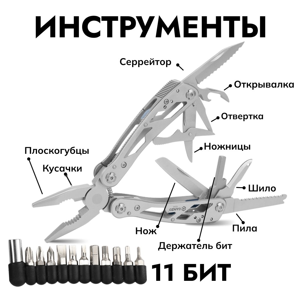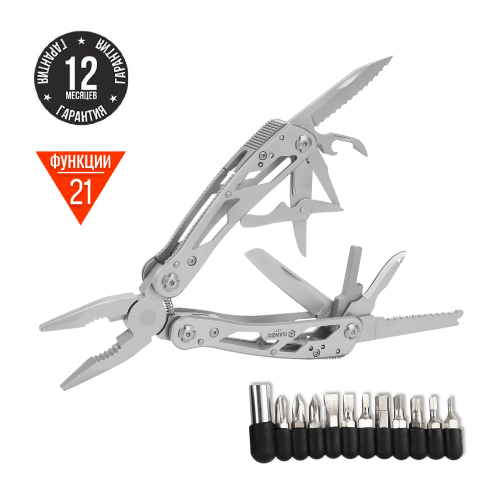 Ganzo G202 — многофункциональный мультитул, который станет незаменимым помощником в квартире, на даче или в путешествии. В нем собрана 21 функция, которые помогут справиться с любой задачей — от ремонта оборудования до приготовления пищи на природе.