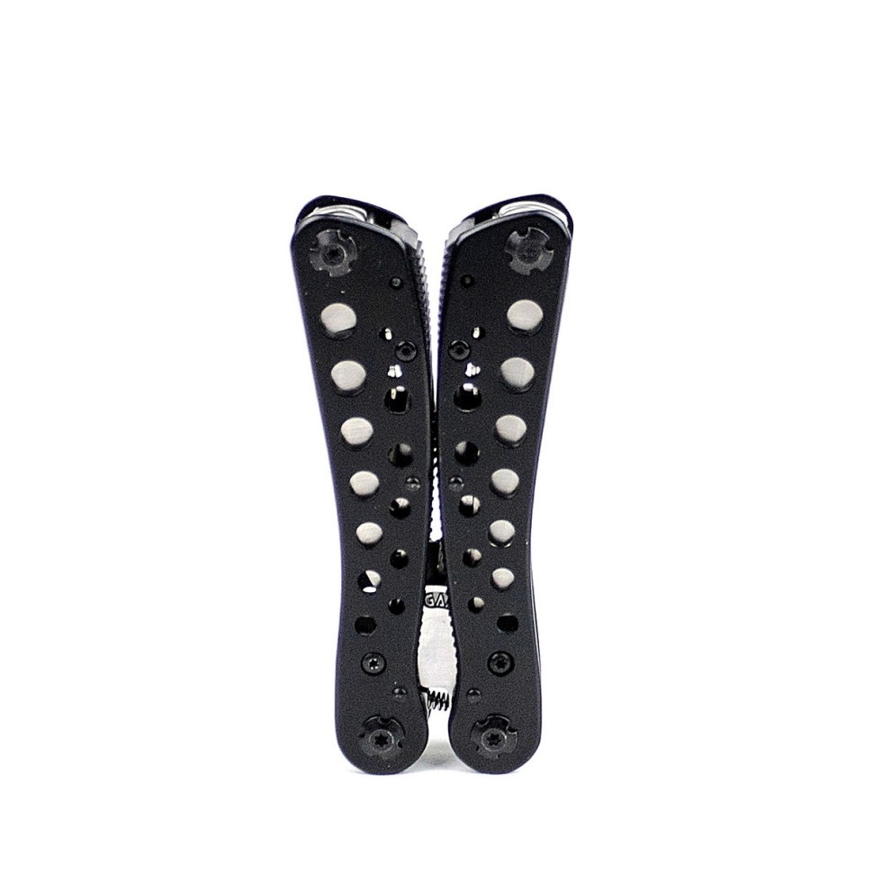 Рукоятки мультитула G204 выполнены в черном цвете. Круглые вырезы не только придают инструменту интересный внешний вид, но и значительно снижают его вес. Насечки на торцевых частях рукояток обеспечивают надежный хват. Инструмент крепко держится в ладони, даже если вы работает мокрыми руками. Для повышения точности работы можно упереть большой палец в рифленые пластиковые вставки в нижних частях рукояток.