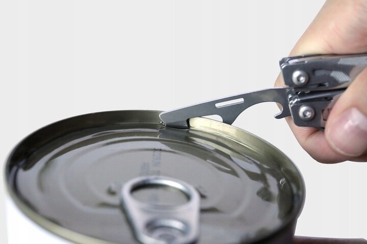 - 8 инструментов (комбинированные плоскогубцы, ножницы, плоская и крестообразная отвертки, нож с прямой заточкой, консервный нож, открывалка для бутылок, пилочка для ногтей);