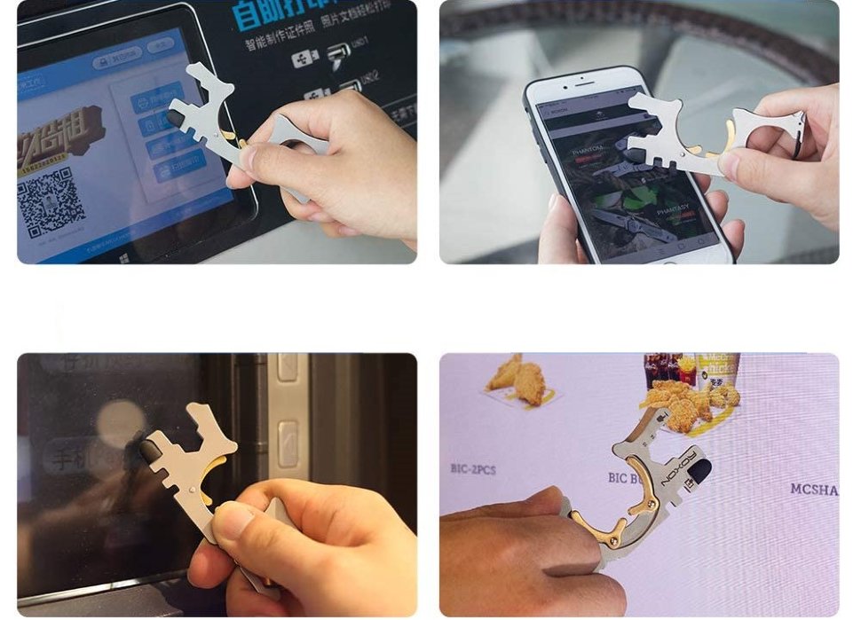 Крючок дверной сделан из натурального антибактериального медного материала, действенного против бактерий и вирусов. Мультитул способствует крепкому захвату и удержанию дверной ручки, без скольжения, гарантируя безопасность. Нажмите, чтобы открыть дверь. Точно так же просто, не опасаясь бактерий, можно идти выносить мусор, идти в супермаркет и выполнять другие действия. Можно даже нажимать на кнопки лифтов или пользоваться банкоматом – всё это труда не составит. Словом, мультиинструмент Roxon Spirit S705 позволяет легко выполнять всё то, что вы делаете обычно с помощью пальцев своих рук. Но при этом – не рискуя заразиться.