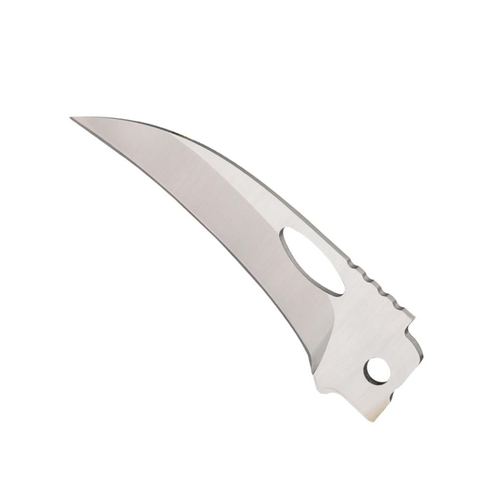 Изогнутая форма клинка напоминает коготь и предотвращает соскальзывание лезвия при работе. Узкий и острый кончик позволяет эффективно использовать нож в узких труднодоступных местах. Такой клинок отлично подходит для резки кустарников, сбора грибов, а также используется рыбаками для разрезания лески или веревок.