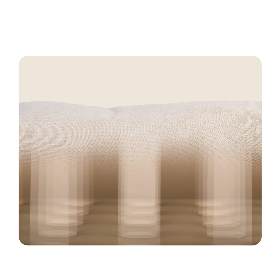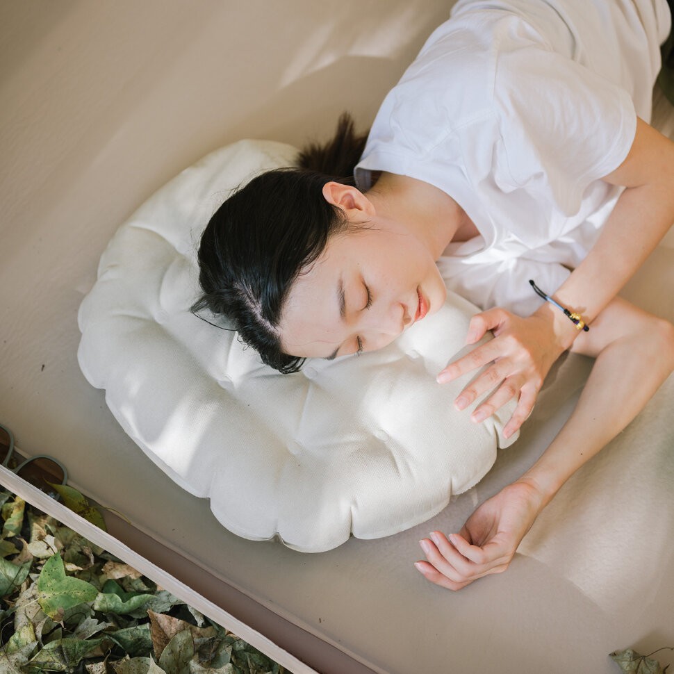 В комплекте с подушкой идет чехол. В расплавленном состоянии изделие занимает 47 x 35 x 9 сантиметров, а упакованный в чехле 8 x 13 сантиметра. Весит бежевая подушка всего 175 грамм.