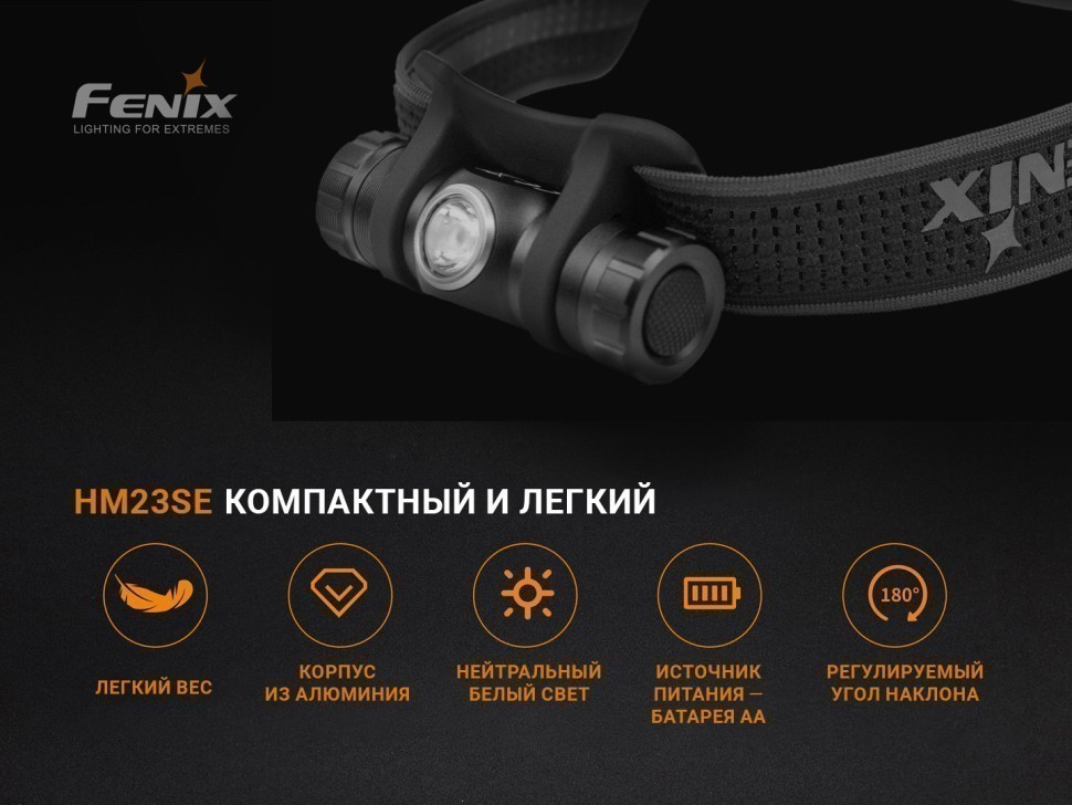 Налобный фонарь Fenix HM23 стал бестселлером в линейке бренда, поэтому производители решили выпустить лимитированную версию. Эластичное крепление в фонаре Fenix HM23SE окрашено в черный цвет. Если вы давно искали уникальный подарок для близкого человека, то вам несомненно стоит присмотреться к новому фонарю.