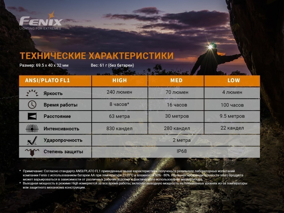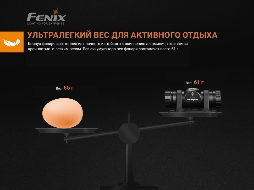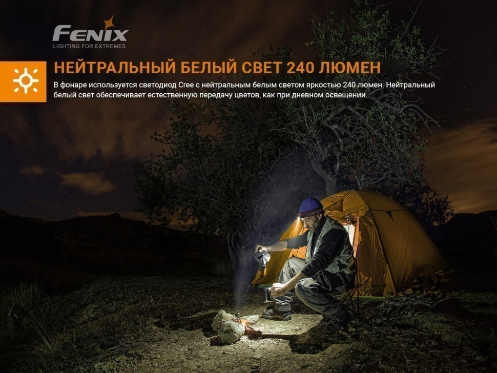 Fenix HM23SE оснащен диодом Cree. Фонарь работает в 3-х режимах: