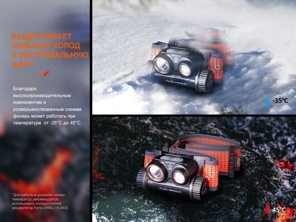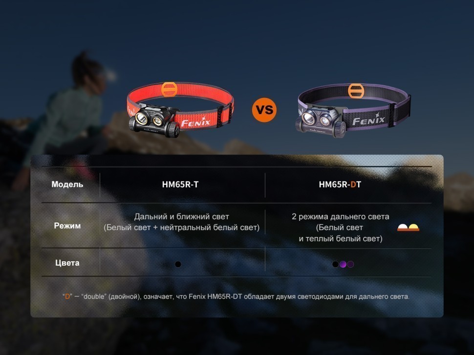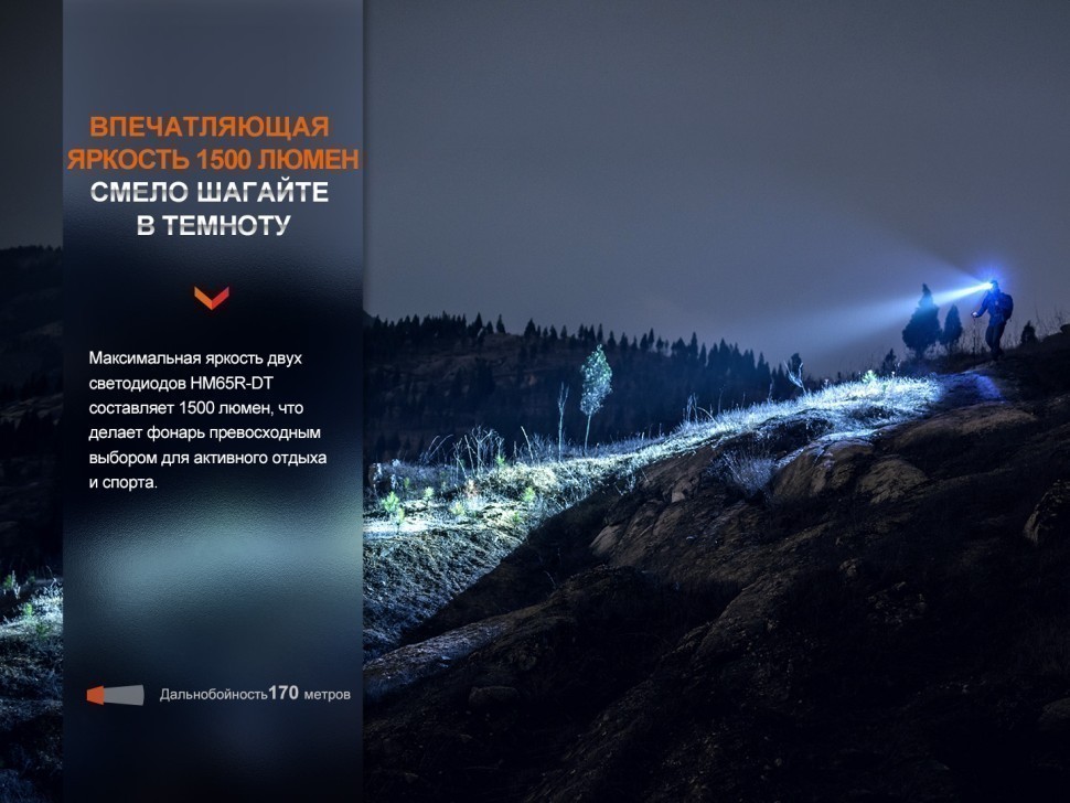 Описание фонаря Fenix HM65R-DT Dual LED небула 1500 люмен: