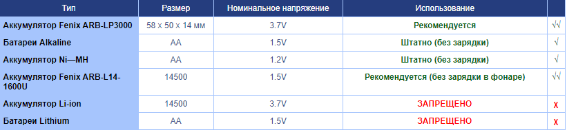 Предупреждение: фонарь даёт освещение большой яркости. Запрещено направлять прямой свет в глаза человеку или животным. Так как во время работы корпус нагревается, необходимо соблюдать осторожность, чтобы не получить ожогов. Светодиод в фонаре нельзя заменить, таким образом, целый фонарь подлежит замене, если светодиод выйдет из строя.