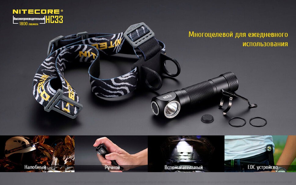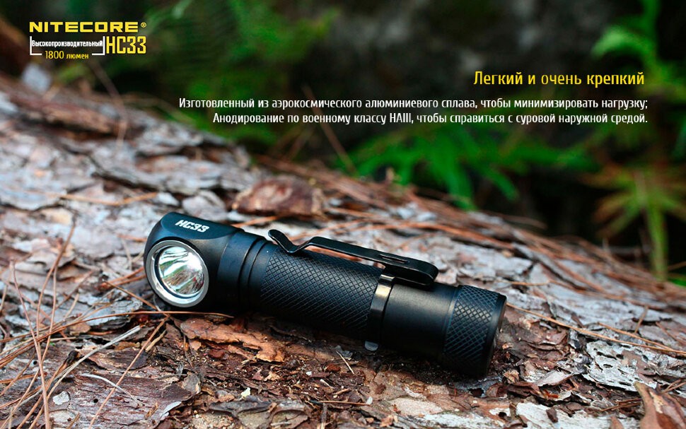 На сегодняшний день была представлена обновленная версия ранее прославившегося многофункционального фонаря Nitecore HC30 – это Nitecore HC33. Улучшая и представляя пользователям новинку, производитель сосредотачивает основное внимание на двух главных элементах – это на светодиоде и аккумуляторе. Работа данных комплектующих связана между собой, так как при замене светодиода, следует и изменение энергопотребности, и после чего следует и использование улучшенного элемента, обеспечивающего питание для полного сочетания в параметрах работы. В результате общего сравнения с предыдущей моделью, представленный фонарь обладает значительно улучшенными характеристиками. Максимально возможный производимый поток, излучаемый фонарем, составляет 1800 люмен, в сравнении с предыдущей моделью Nitecore HC30 – данное значение ранее составляло всего 1000 люмен, а настоящее значение мощности представленного Nitecore HC33 практически в два раза выше. С увеличением мощности, повышается и дальность возможной освещаемой области и реальном случае от данного фонаря составляет целых 187 метров. Невероятные значения максимальной мощности и дальности, представлены для использования в налобном фонаре, а ранее были доступны исключительно для ручного или туристического применения.
