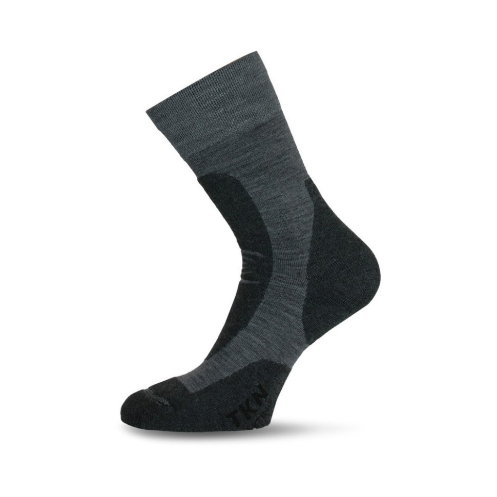 Изделие выполнено в темно-сером цвете с черным вставками. Такой цвет отлично сочетается как с треккинговыми ботинками, так и с обычной спортивной обувью, что делает носки практичным выбором для любых условий.