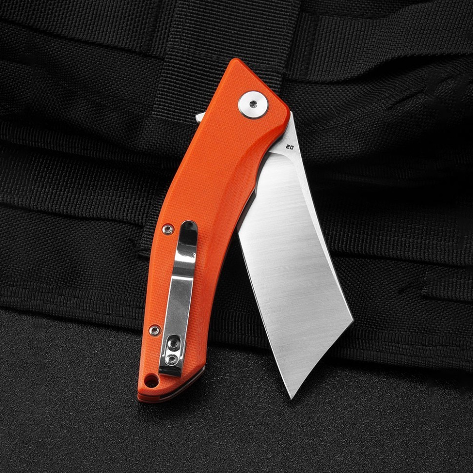 Рукоятка из материала G10 отличается легкостью и высокой прочностью. G10 обеспечивает надежный хват даже в условиях повышенной влажности или экстремальных температур. Оранжевый цвет рукоятки придает эстетическую привлекательность и делает нож легко заметным.