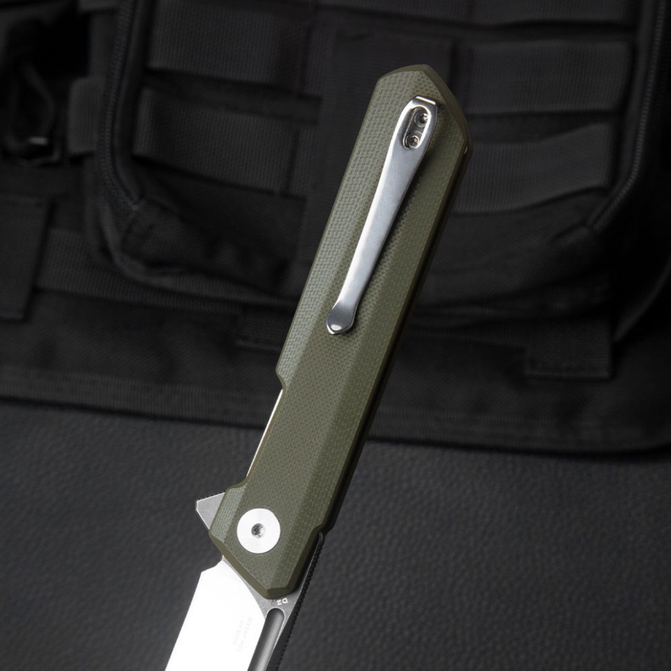 Рукоять Bestechman Dundee выполнена из материала G10 с шероховатой поверхностью, обеспечивающей надежный и комфортный хват. Это чрезвычайно прочный, влагонепроницаемый и ударостойкий композитный материал на основе стеклоткани и эпоксидной смолы. Рукоять также оснащена выемкой, которая в сочетании с флиппером формирует надежный подпальцевый упор. Это предотвращает соскальзывание руки на режущую кромку.