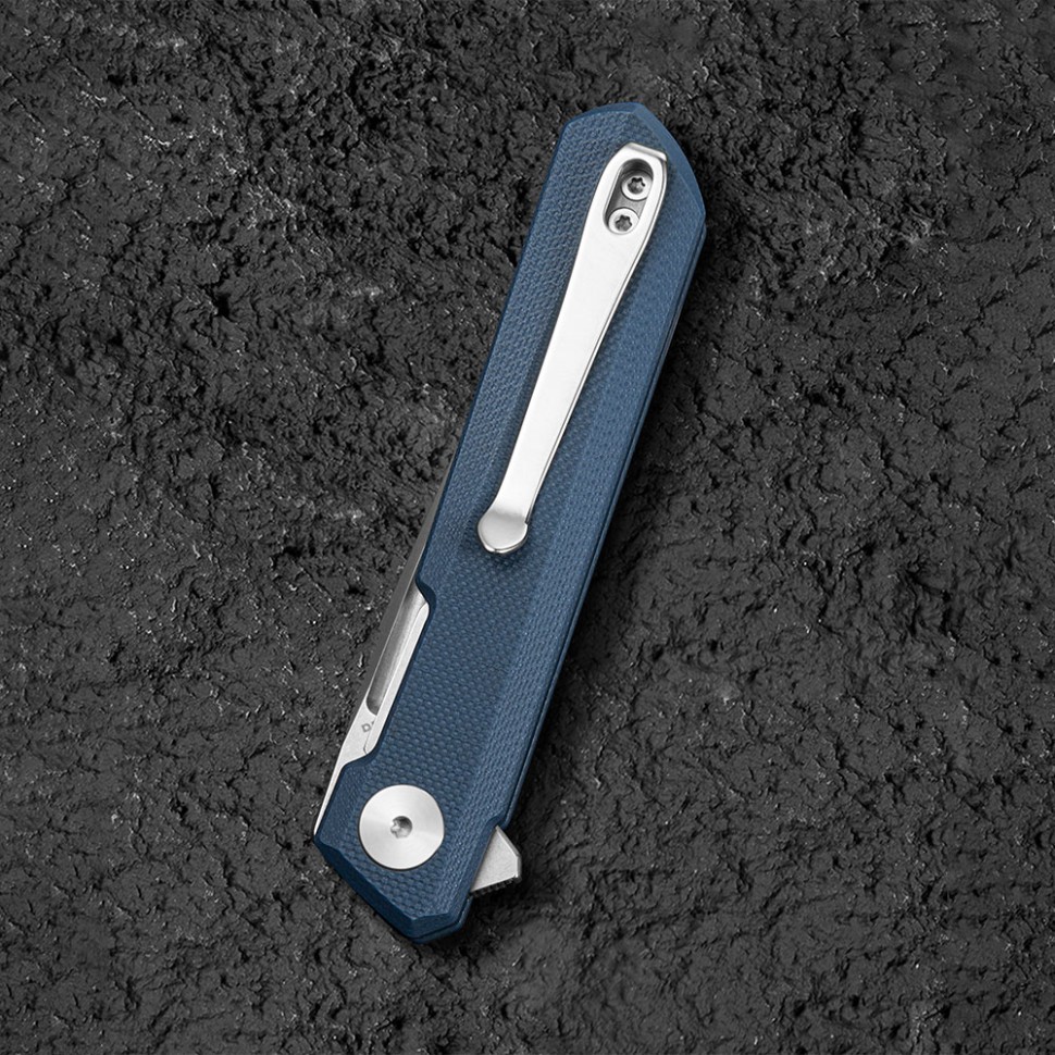 Открытие ножа осуществляется с помощью флиппера, а плавность механики обеспечивается керамическими шарикоподшипниками в осевом узле. Замок Liner Lock надежно фиксирует клинок в открытом положении, обеспечивая безопасность во время работы. Складной нож Bestechman Mini Dundee также оборудован переставляемой клипсой, которая позволяет носить его на ремне или в кармане.