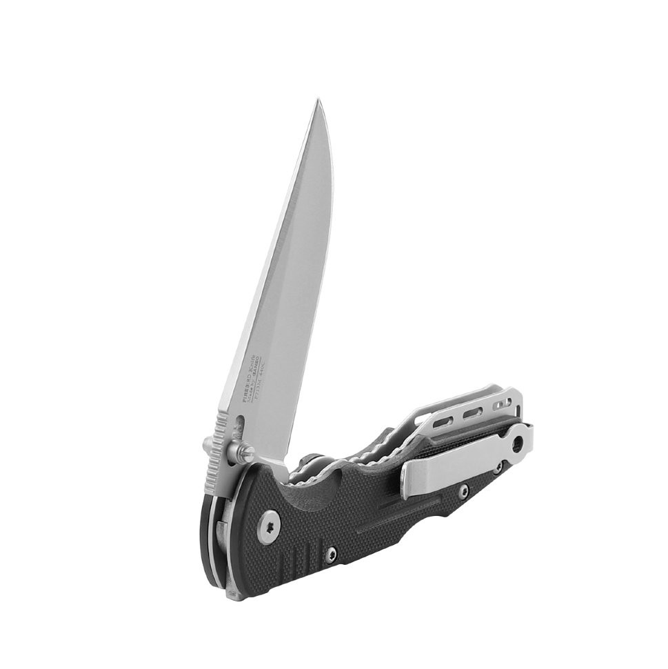 Извлекается клинок при помощи двухстороннего шпенька. К слову, в модели Firebird F713M положение шпенька можно «подогнать» под себя. А фиксация лезвия осуществляется замком Back-lock, благодаря чему нож Firebird F713M гарантированно не сложится даже при значительных нагрузках на клинок.