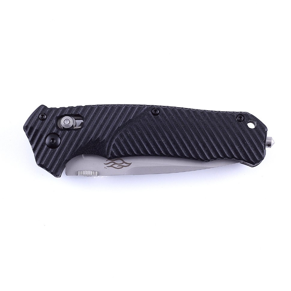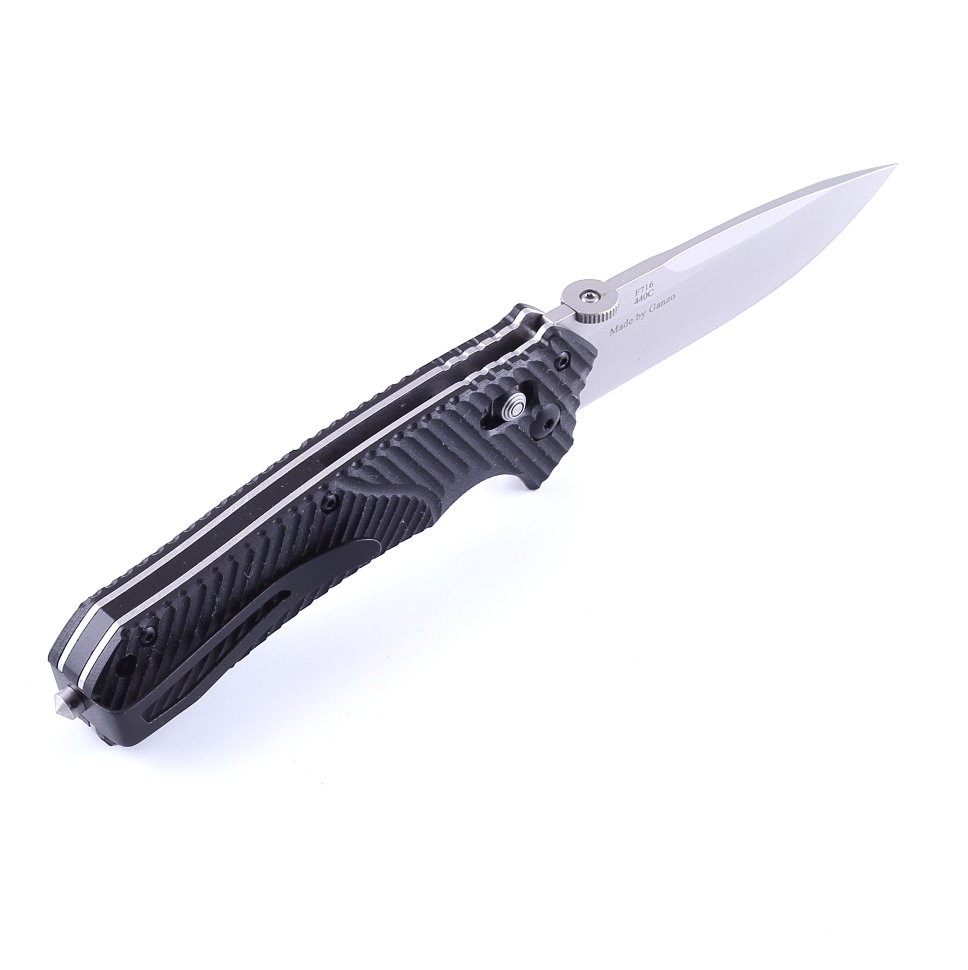 Firebird F716 — это складной туристический нож с 8,5 -сантиметровым классическим клинком из 440С нержавеющей стали. В данной модели производителем установлен фиксатор Axis lock, что позволяет беспрепятственно и безопасно открывать и закрывать инструмент одной рукой. Вес изделия составляет 145 г, общая длина — 21 см, длина в собранном состоянии — 12 см, ширина по обуху — 0,35 см. На текстурированной рукояти черного цвета предусмотрена крепежная металлическая клипса, а на торце ручки имеется стеклобой.