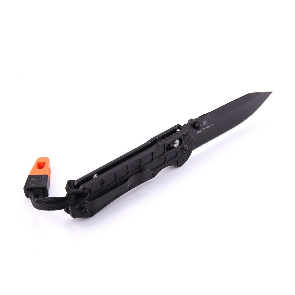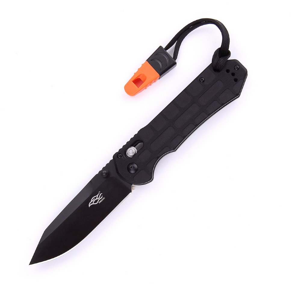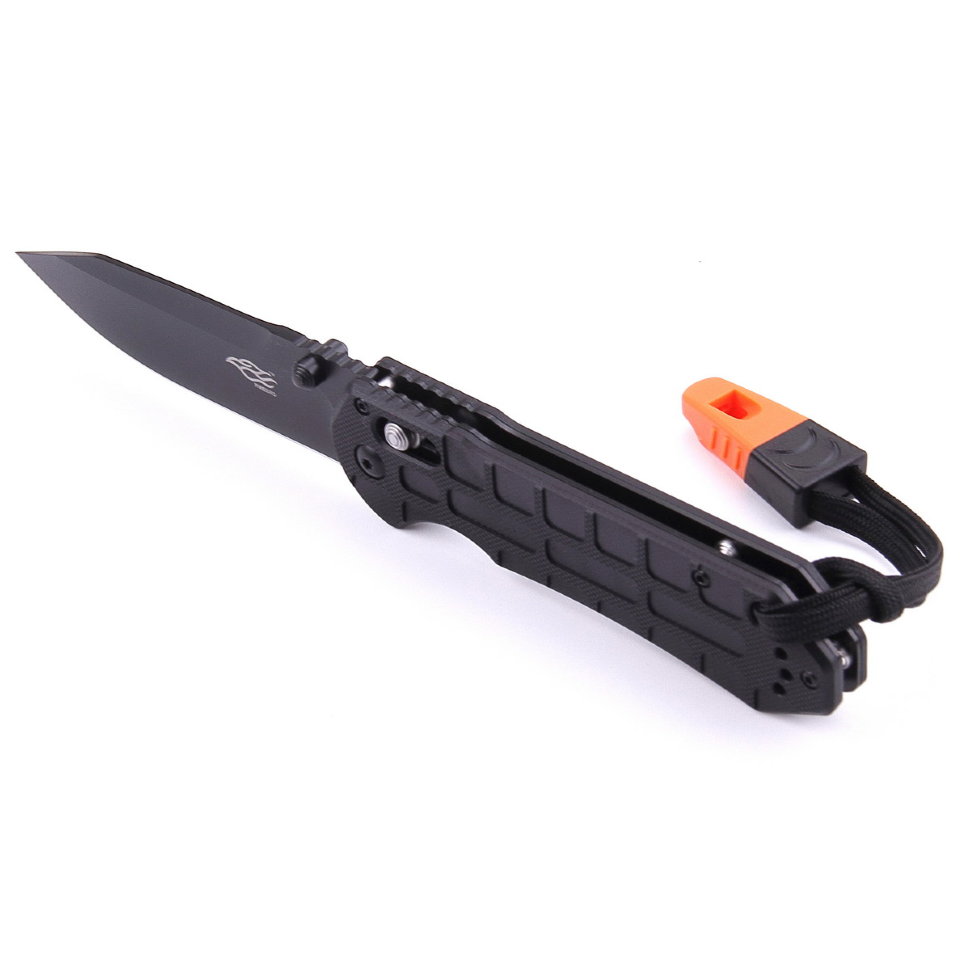 Складные ножи особенно удобны для туризма, а модель Firebird F7453-WS сделана таким образом, чтобы учесть все особенности полевого использования. Металл для этого ножа — нержавеющий. Это твердая марка стали 440С (порядка 58HRC), которая способно долгое время сохранять высокое качество заточки. Клинок имеет острый кончик, характерный для формы drop-point, и полностью ровную линию заточки. Чтобы поверхность лезвия не блестела на солнце, она покрыта стойкой синтетической краской черного цвета. Как результат — металл матовый, а нож не только практичный, но и очень привлекательный внешне. Царапины на такой поверхности практически не заметны, поскольку для покрытия используются только материалы высокого качества.