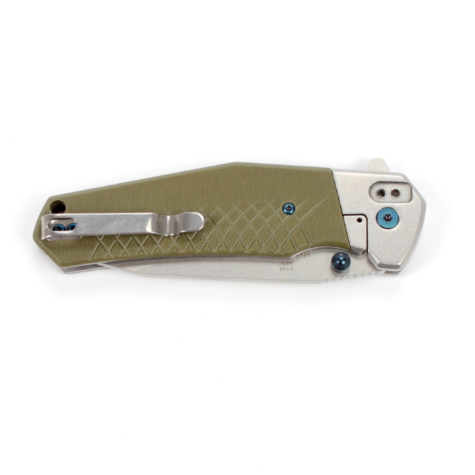 Рукоятка модели Firebird F7492 создана удобной, долговечной и очень хорошо защищенной от различных негативных влияний. Материалом для нее послужил стеклопластик (обозначается аббревиатурой G10). При малом весе, он отличается действительно высокой прочностью, поскольку этот материал входит в число композитов. Покупателям предоставляется выбор из трех цветов рукояток: оранжевого, черного и зеленого. В каждой из них сделано отверстие, чтобы можно было продеть ремешок. Нож Firebird F7492 комплектуется и клипсой, которую можно переустановить с одного конца рукоятки на другой.