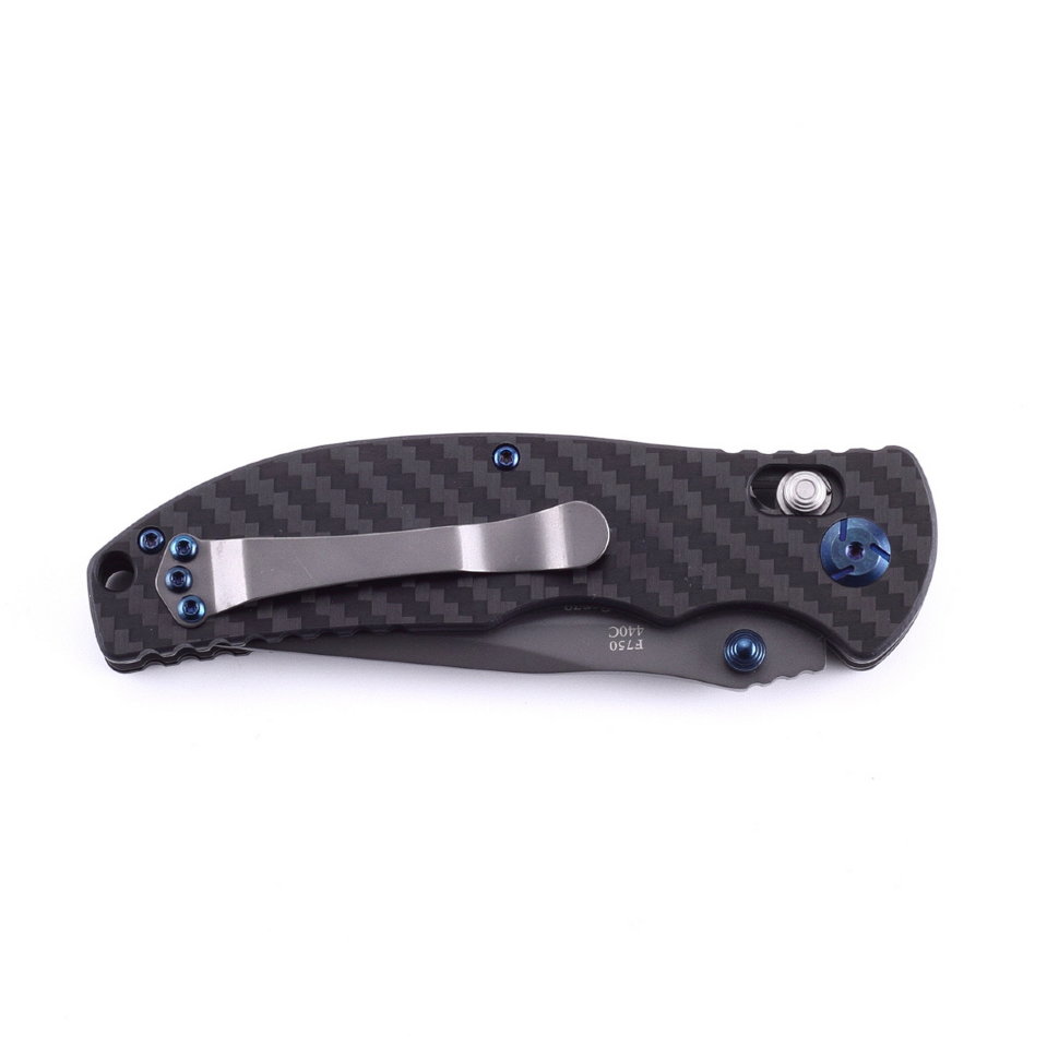 Для желающих приобрести практичную модель складного ножа, компания Firebird презентовала модель F7503-CF. Это качественная модель, которая обладает тактическими свойствами. Нож изготавливается из стали 440С. Данная марка относится к числу нержавеющих, что позволяет свободно использовать нож на рыбалке или в других условиях с повышенной влажностью. Важно и то, что такая сталь долгое время сохраняет заточку, чтобы уход за клинком сводился к минимуму. Что касается непосредственно лезвия Firebird F7503-CF, оно сделано в форме clip point, имеет длину 89 мм и заточено обычным способом — гладко. Клинок сделан черным, чтобы металл не отражал лучи от солнца или фонарей. Это очень стойкое покрытие, которое не стирается со временем.