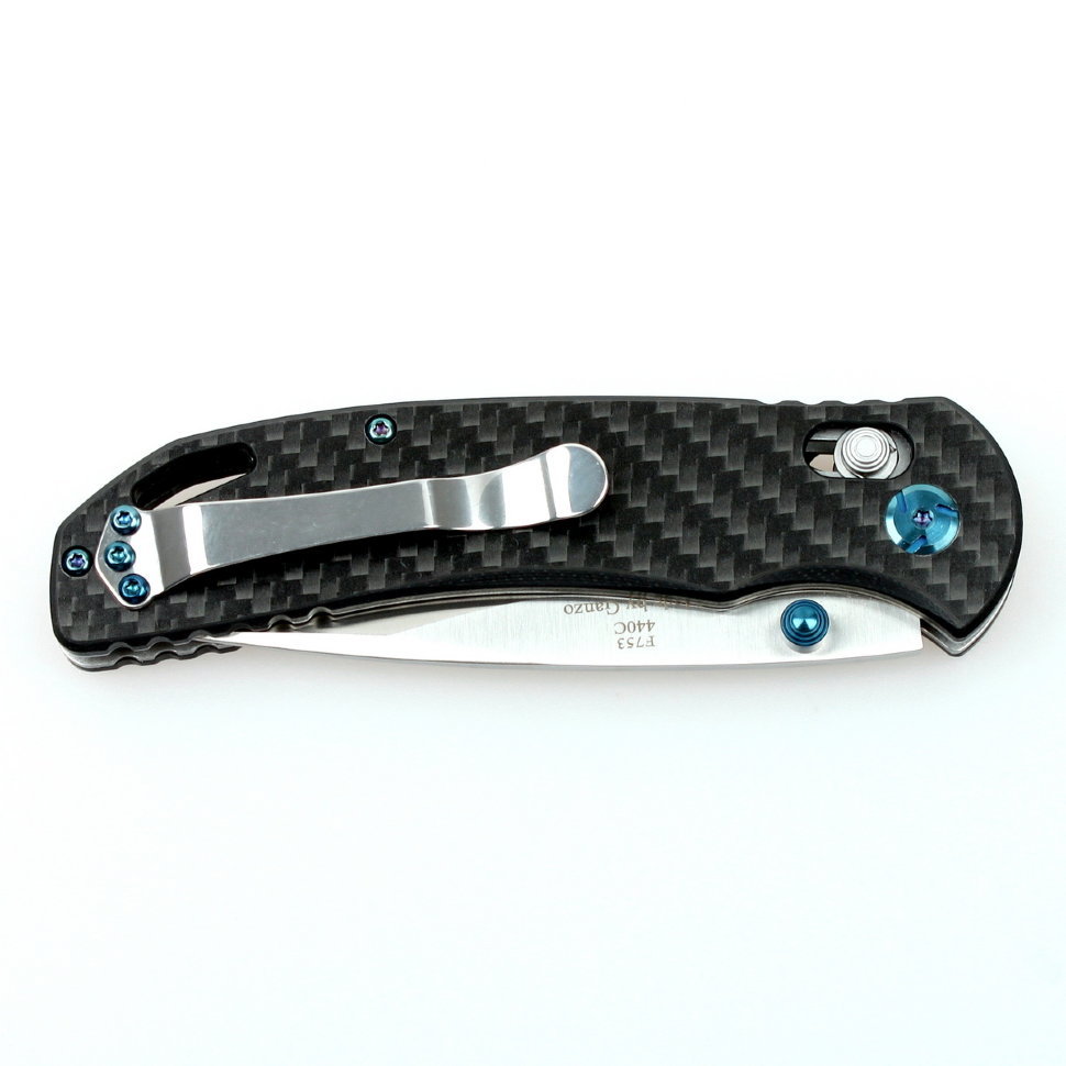 В модели Firebird F7531-CF для рукоятки используется инновационный материал — карбон. Он одновременно очень легкий и прочный, поскольку изготовлен по принципу композитов. Поэтому накладки на рукоять будут действительно долговечными. В то же время, нож получился максимально облегченным (126 грамм). Окрашена рукоятка в данной модели в черный цвет.