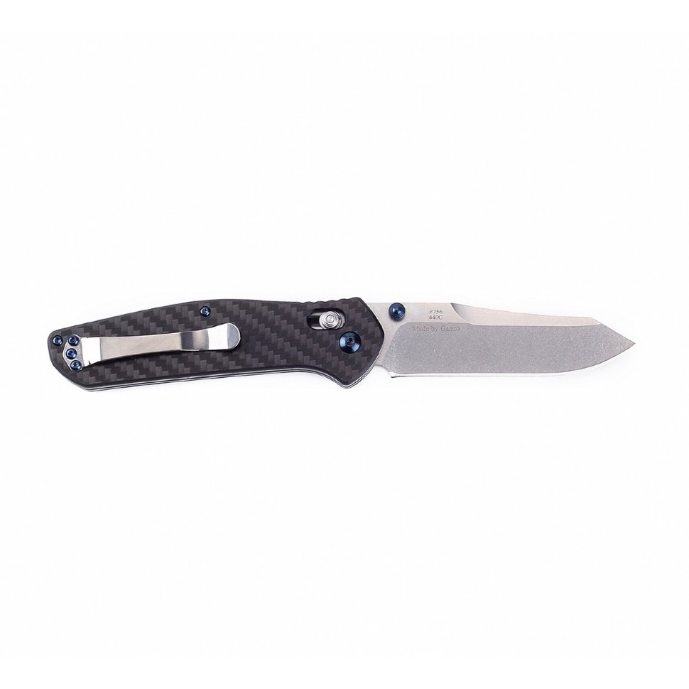 Рукоятка изготовлена из композитного материала «carbon fiber», в основу которого легла углеродная ткань. Это придаёт ручке лёгкость, но повышенную жёсткость и прочность. Текстура материала делает нож очень симпатичным, также она совершенно не скользит даже во влажной руке. Форма рукояти также продумана инженерами Ganzo – работать им одно удовольствие.