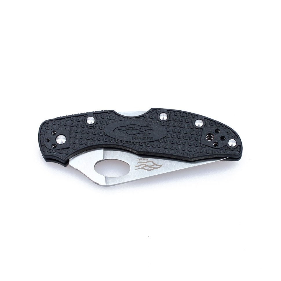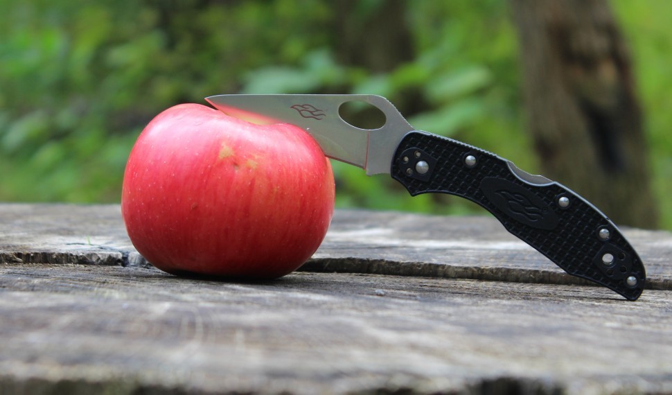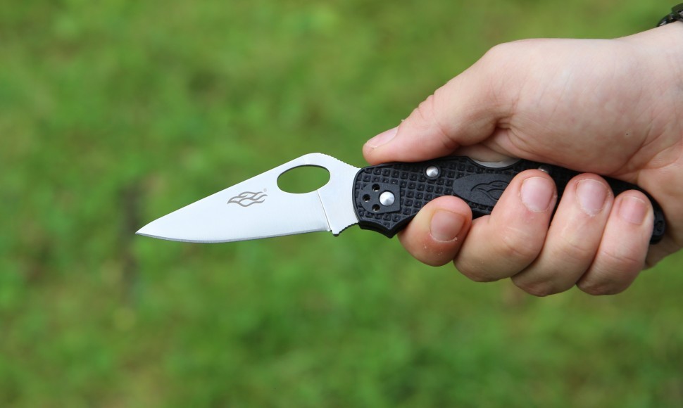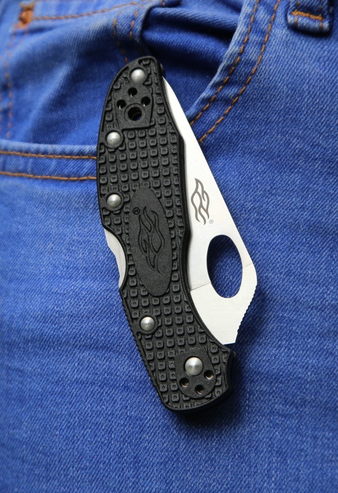 Лезвие Firebird F759M сделано из стали 440С — одной из самых востребованных в сфере производства ножей. Это нержавеющая сталь с таким балансом составляющих элементов, что она может очень долго быть острой после заточки. Режущая кромка ножа с заводского конвейера поступает уже качественно заточенной и полностью ровной. В дальнейшем, ухаживать за таким ножом можно и при помощи домашних точильных инструментов, выполняя заточку самостоятельно. Дизайн Firebird F759M предполагает, что вместо шпенька для открытия клинка будет использоваться отверстие на лезвии. Поэтому часть клинка около рукоятки выступает за пределы высоты ручки ножа. В открытом виде лезвие выглядит очень оригинально.