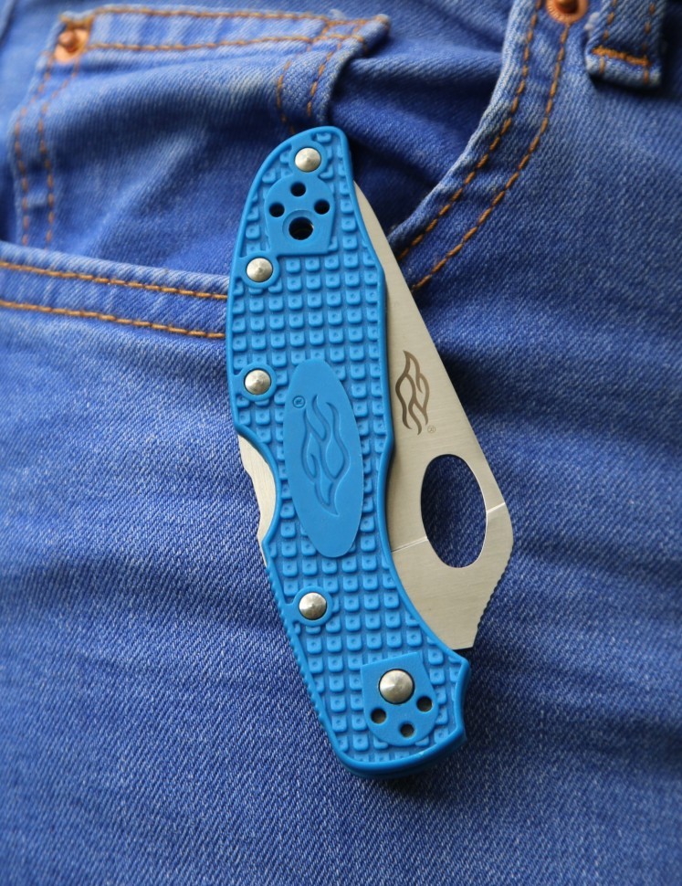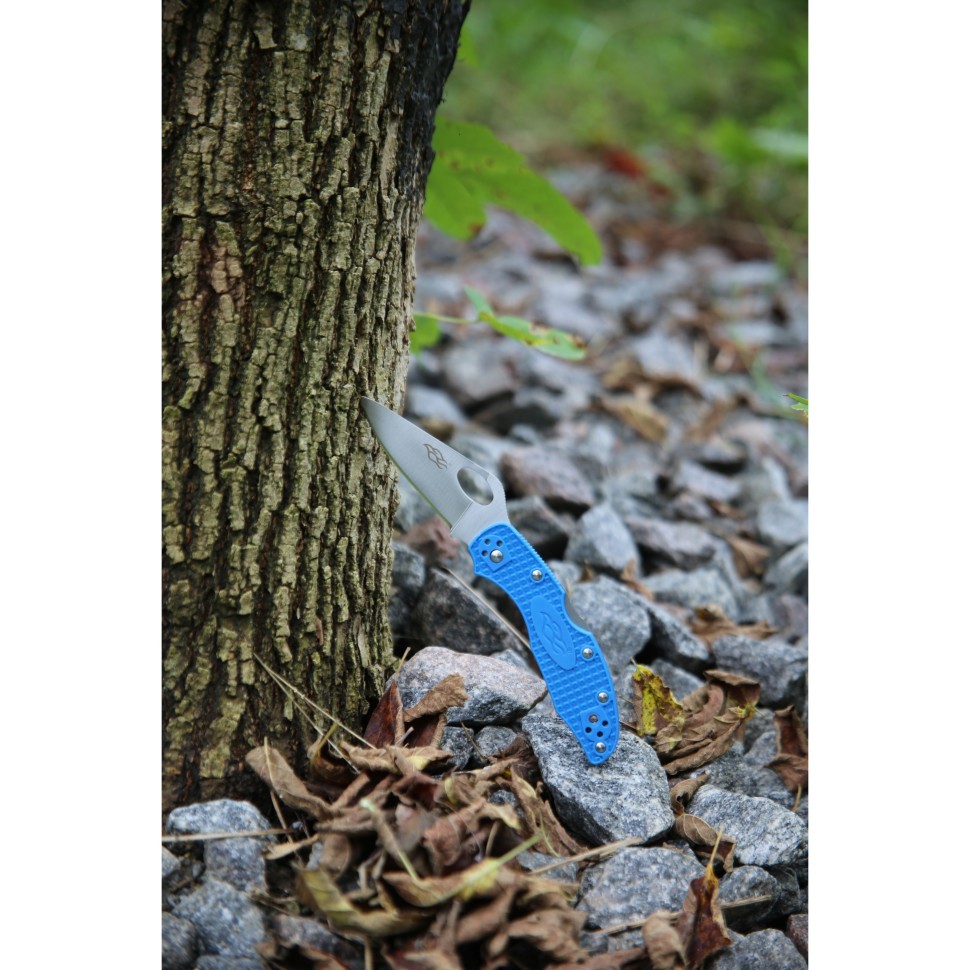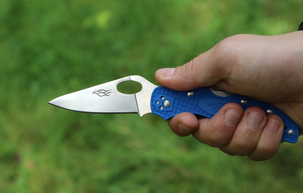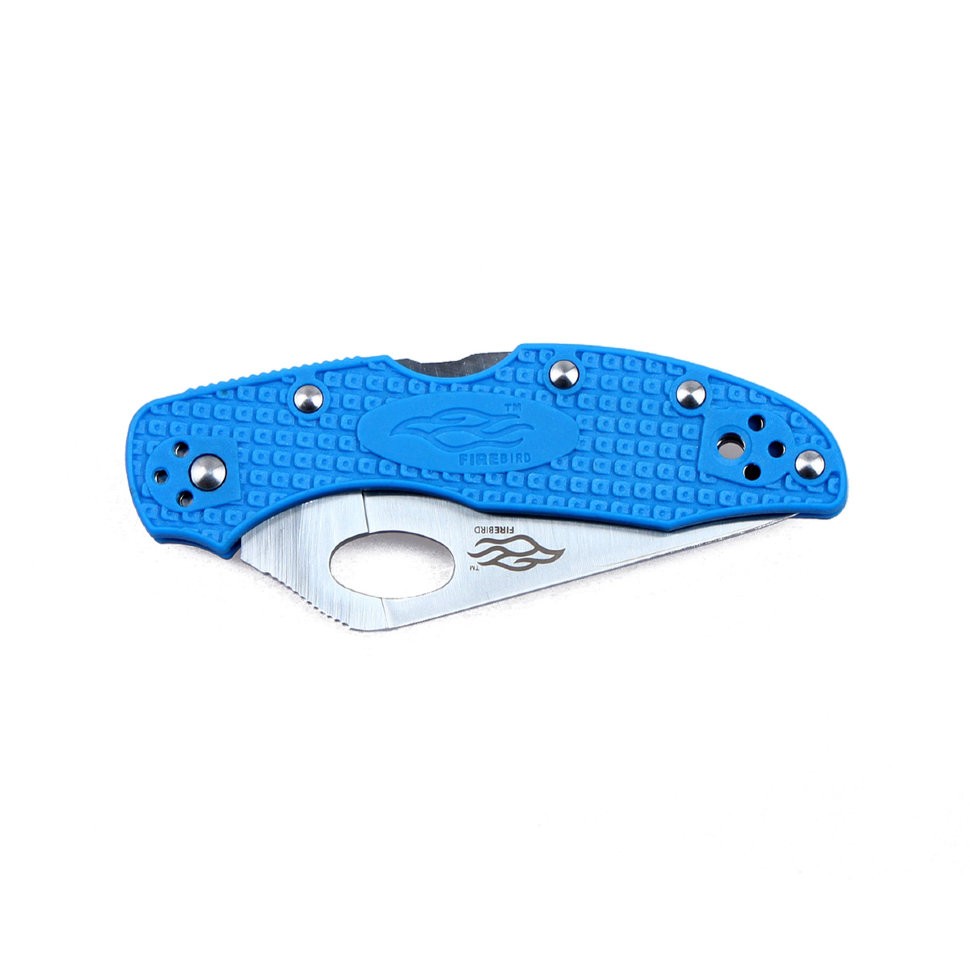 Лезвие Firebird F759M сделано из стали 440С — одной из самых востребованных в сфере производства ножей. Это нержавеющая сталь с таким балансом составляющих элементов, что она может очень долго быть острой после заточки. Режущая кромка ножа с заводского конвейера поступает уже качественно заточенной и полностью ровной. В дальнейшем, ухаживать за таким ножом можно и при помощи домашних точильных инструментов, выполняя заточку самостоятельно. Дизайн Firebird F759M предполагает, что вместо шпенька для открытия клинка будет использоваться отверстие на лезвии. Поэтому часть клинка около рукоятки выступает за пределы высоты ручки ножа. В открытом виде лезвие выглядит очень оригинально.