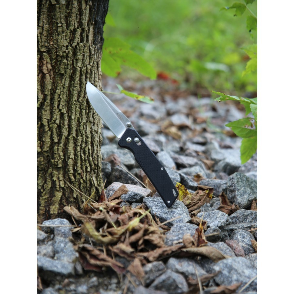 Лезвие в модели FB7601 имеет длину 87 мм и сделано из хорошо защищенной от возникновения ржавчины стали 440С. Твердость данной марки металла составляет 58 HRC, поэтому нож достаточно просто затачивать самостоятельно, но этого не потребуется делать часто. Кстати говоря, заточка в данной модели — гладкая, подновить ее можно при помощи даже самой примитивной точилки. Удобно и то, что в качестве метода финишной шлифовки ножа производители выбрали сатинирование. Благодаря этому, на лезвии гораздо менее заметны мелкие повреждения, наподобие царапин или потертостей.