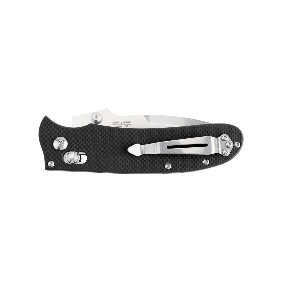 Ganzo 704 — очень удачная модель туристического ножа от компании Ganzo, предложенная в двух цветах рукояти. Функциональный клинок классической формы drop-point с прямой заточкой выполнен из высококлассной стали D2 60 HRC и фиксируется механизмом Axis Lock.