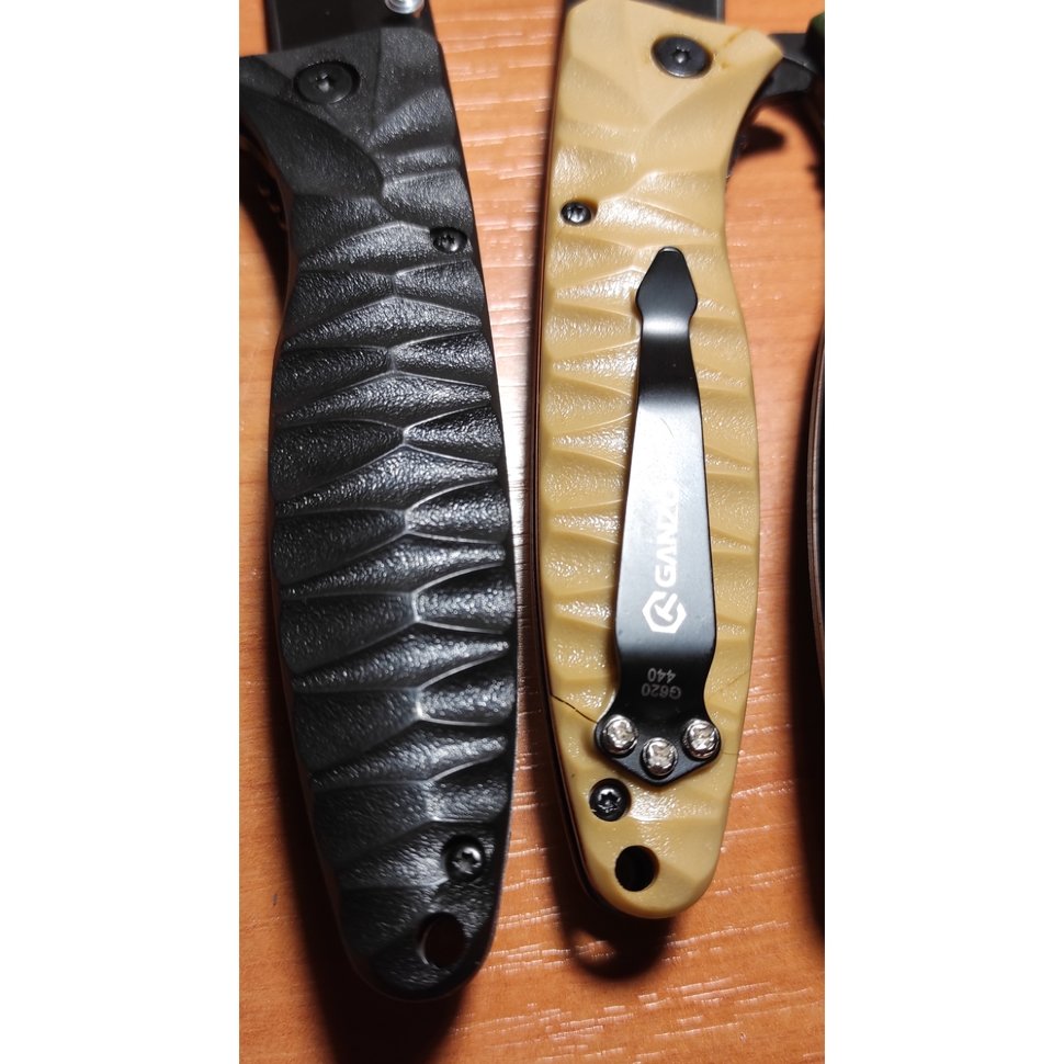 Для рукоятки ножа Ganzo G620 производители применили ударопрочную термопластическую смолу ABS. На ее внутренней стороне находится клипса, с помощью которой нож можно прикрепить к ремню.