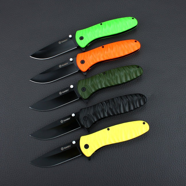 Нож Ganzo G622-O-1 с первого взгляда выделяется среди других моделей. Во многом — благодаря своему яркому дизайну. Рукоятка этой модели сделана из яркого оранжевого рифленого пластика ABS, а клинок — вороненый.