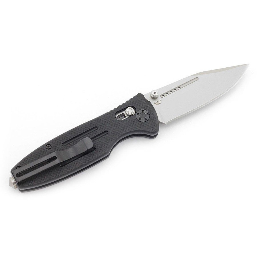 Рукоять имеет удобную форму, что позволяет комфортно удерживать нож во время работы. Для фиксации лезвия используется замок Axis Lock, который отличается высокой надежностью. Нож G702 снабжен металлической клипсой, которую можно крепить на удобную сторону рукояти. Модель рассчитана на открытие лезвия одной рукой.