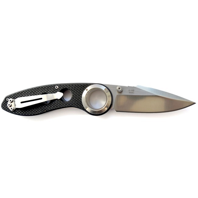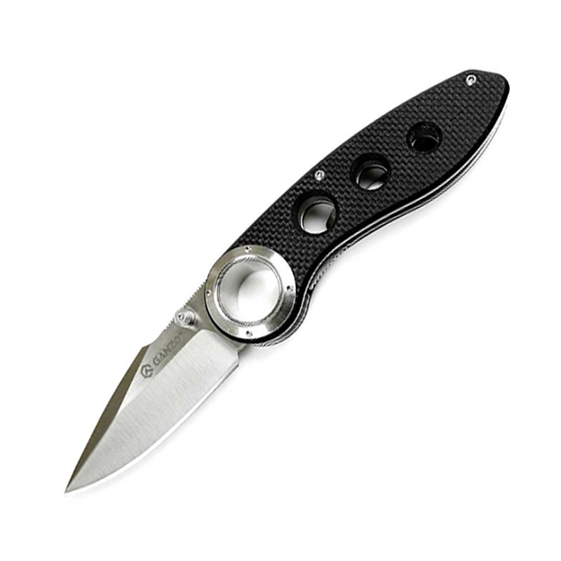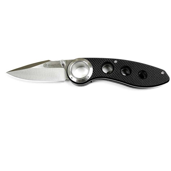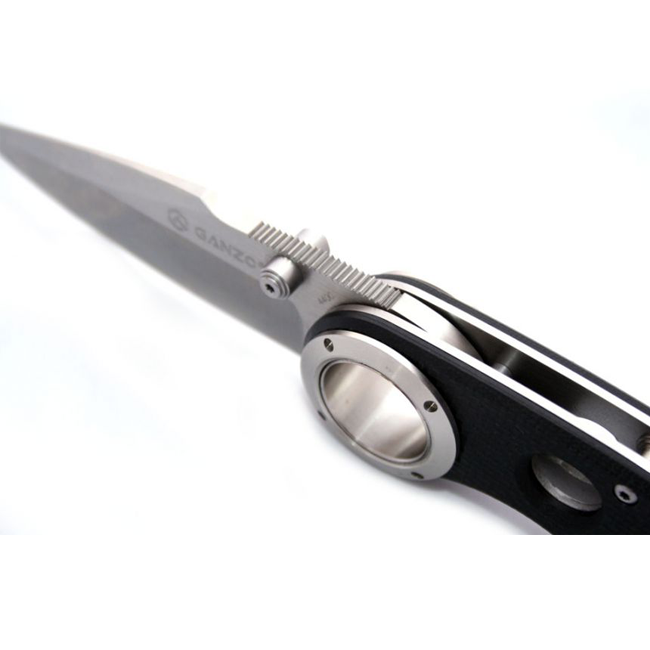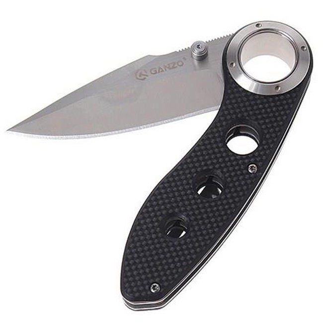 Необычный складной нож G708 от производителя Ganzo является одной из новинок этого года. Модель имеет специфический дизайн, который покорит пользователей своей оригинальностью. Лезвие модели имеет форму spear-point, прямую заточку и изготовлено из «нержавейки» 440С, которая после термической обработки приобретает заявленную производителем твердость 58-60HRC. Сталь 440С широко используется ведущими производителями ножей, легко затачивается и хорошо держит режущую кромку. В самой широкой части обуха лезвие имеет толщину четыре миллиметра, что придает ему особую прочность. Для накладок на эргономическую рукоять использовался текстолит G10, отличающийся повышенными сцепными свойствами и высокой механической прочностью. Для фиксации лезвия используется простой и надежный замок Liner Lock, который исключает продольный и поперечный люфт. Удобная металлическая клипса позволяет закрепить нож в кармане джинсов или на туристическом снаряжении.