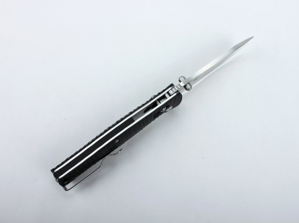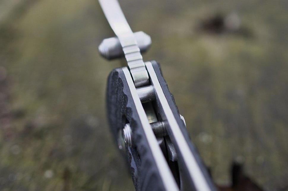 В данной модели установлен замок Axis. Это замок штифтового типа, в котором клинок фиксируется при помощи подпружиненного металлического штифта. Пользоваться замком Axis одинаково удобно любой рукой. А его преимущество в том, что нож с замком Axis не может сработать случайным образом. Единственное условие для исправности замка — необходимо поддерживать его в чистоте.
