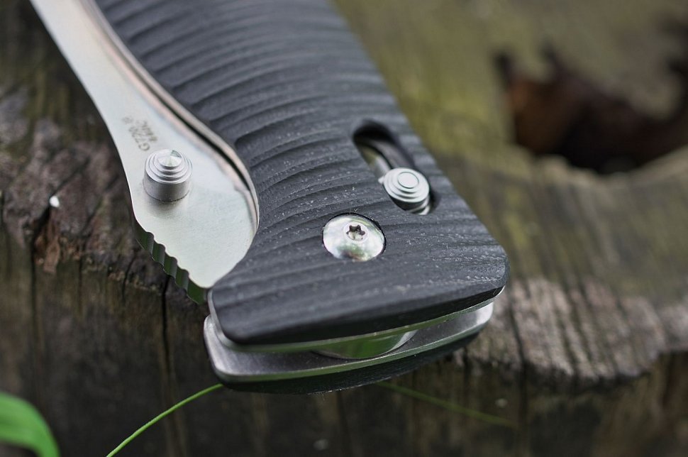 Для накладок на рукоятку ножа производители использовали современный вид пластика высокой прочности под названием G10. По сути, он представляет собою композитный материал из эпоксидных смол и стеклоткани. Этот материал обладает высокой прочностью, хорошо выдерживает удары, противостоит влаге и долгое время сохраняет яркий цвет. Рукоятка ножа Ganzo G720 неровная. Такая форма одновременно играет роль элемента дизайна и способствует надежному хвату.