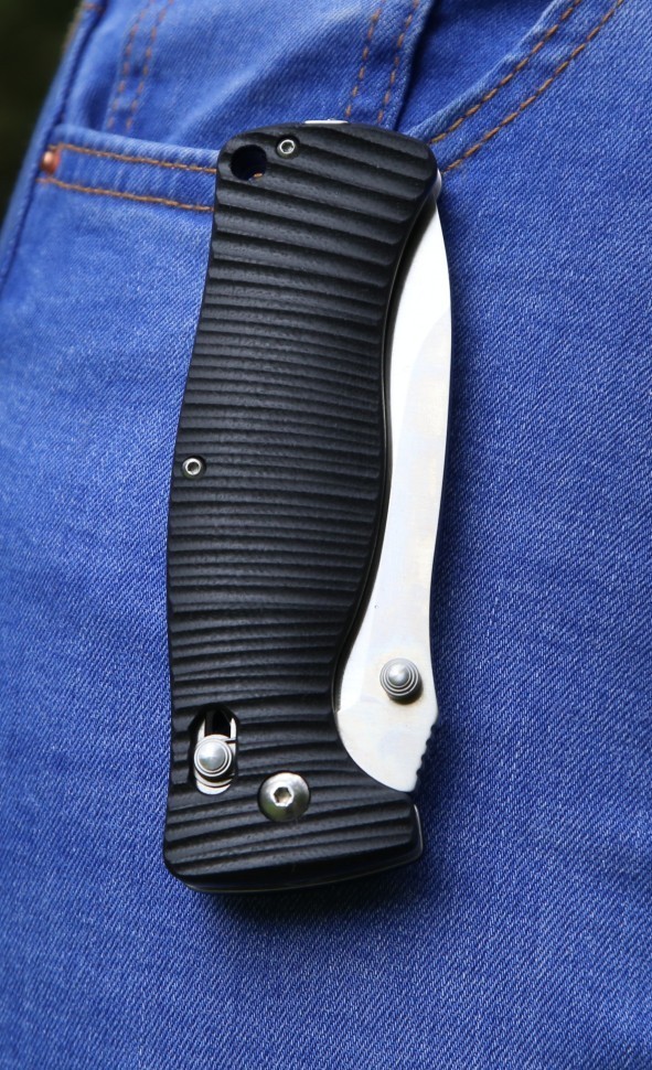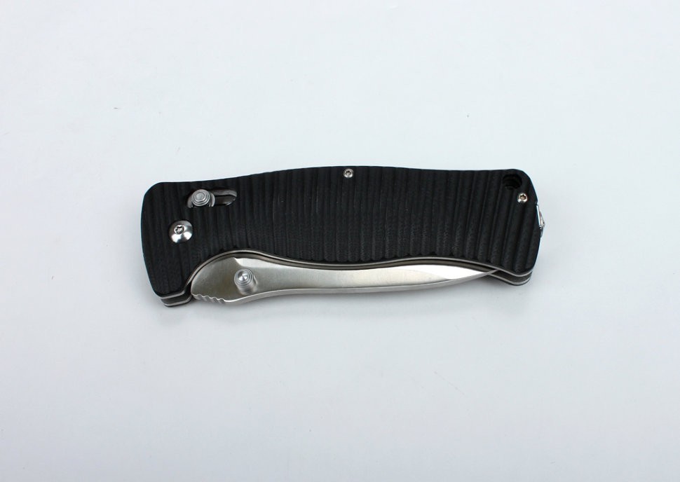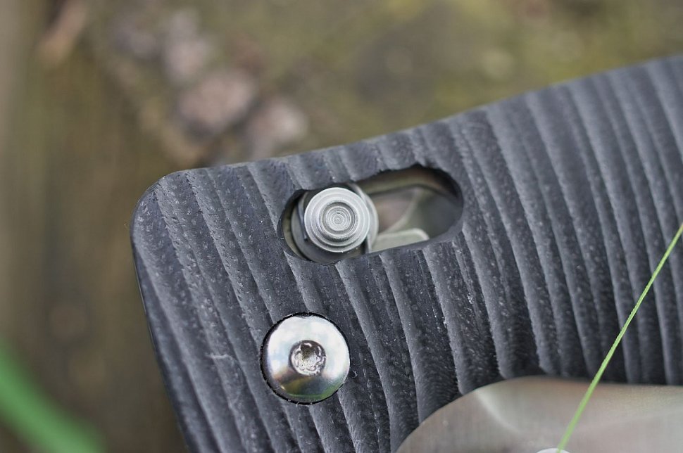 В данной модели установлен замок Axis. Это замок штифтового типа, в котором клинок фиксируется при помощи подпружиненного металлического штифта. Пользоваться замком Axis одинаково удобно любой рукой. А его преимущество в том, что нож с замком Axis не может сработать случайным образом. Единственное условие для исправности замка — необходимо поддерживать его в чистоте.